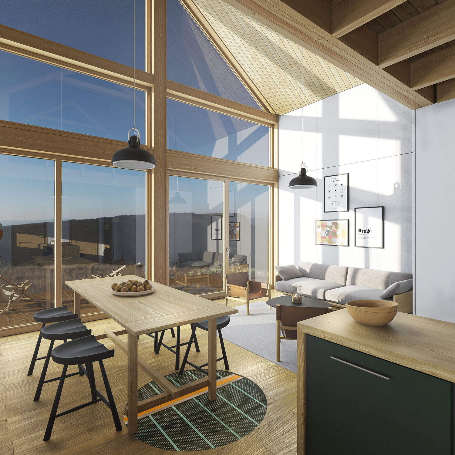 W domu modułowym Hauk zastosowano innowacyjną technologię ogrzewania podczerwienią – system grzewczy pod podłogi pływające Heat Decor z folią grzewczą HD-G. Technologia działa bezgłośnie i niewidocznie, ponieważ jest całkowicie schowana pod elementami wykończenia. Zapewnia przy tym maksymalną efektywność, energooszczędność i ekologię, równomiernie rozprowadzając ciepło na całej powierzchni. Wnętrze domu jest wolne od tradycyjnych grzejników, przez co zachowuje czystość formy i swobodę aranżacji.