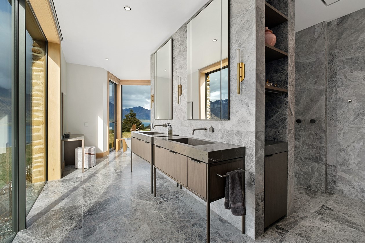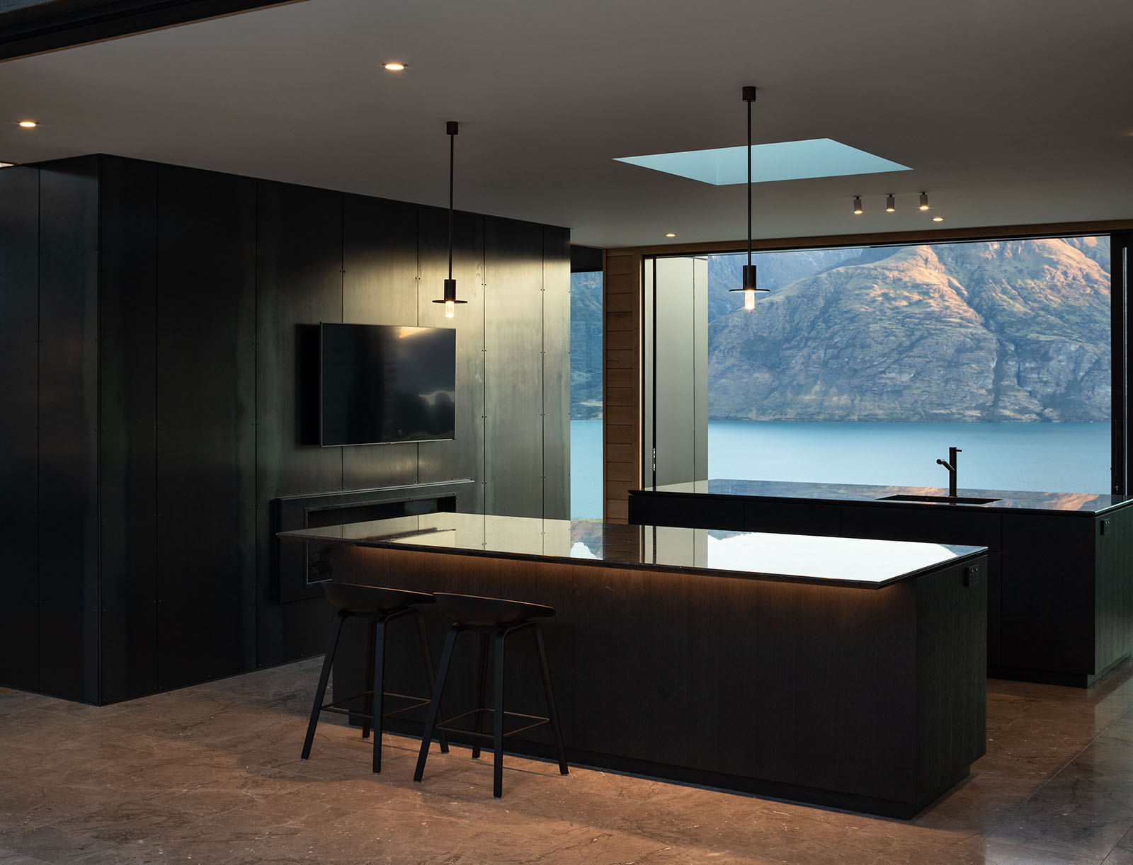 Nowoczesna stodoła Closeburn Lodge urzeka swoją rzeźbiarską formą, dramatycznie stromo nachylonymi dachami i śmiałą geometrią. Połączone ze sobą pawilony tworzą spójną, architektoniczną opowieść, w której każdy element – od formy po materiał – ma swoje uzasadnienie. Wnętrza zaprojektowano z dbałością o proporcje, światło i detal. Przestrzenie mieszkalne oferują panoramiczne widoki, komfort i prywatność, tworząc idealne warunki do życia i wypoczynku w jednym z najpiękniejszych regionów Nowej Zelandii. Kamień, stal, szkło i drewno – wszystko to łączy się w elegancką kompozycję stylu, luksusu i naturalnego piękna.