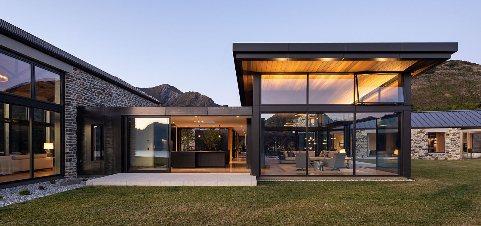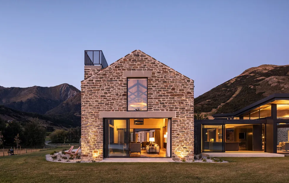 Zaledwie dziesięć kilometrów na zachód od Queenstown, wysoko nad taflą jeziora Wakatipu i autostradą do Glenorchy, wznosi się niezwykła rezydencja – Closeburn Lodge. Ten wyjątkowy projekt to połączenie nowoczesnej architektury z lokalną tradycją, ujęte w formie nowoczesnej stodoły. Kompleks mieszkalny o powierzchni aż 900 m² został zaprojektowany jako zestaw kamiennych pawilonów, przypominających klasyczne nowozelandzkie stodoły, wzbogaconych o współczesne formy i materiały.