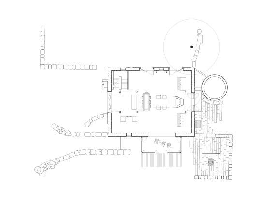 Aby zachować autentyczność miejsca, architekci stanęli przed wyzwaniem odbudowy połowy kamiennych ścian, dbając o to, by uzyskać odpowiednią mieszankę zaprawy, idealnie dopasowaną do istniejącej struktury. Bliska współpraca z inżynierem budowlanym oraz murarzem pozwoliła uzyskać teksturę i reakcję zaprawy na zmieniające się warunki atmosferyczne, zachowując spójność z pierwotnym wyglądem kamiennego budynku.