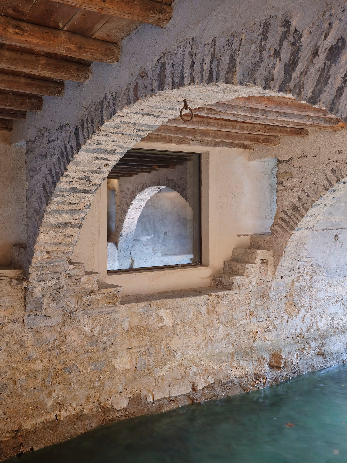 Dom pierwotnie był dostępny wyłącznie od strony jeziora. Przez sklepione wejście wpływała łódź, a przestrzeń wewnątrz służyła jako schronienie dla niej. Dziś to miejsce przekształcono w nastrojowy salon ze spa i gabinetem, do którego wpada światło odbite w tafli jeziora. Refleksy wody wciąż przechodzą przez dom, tworząc poetycki ruch światła i cienia – architektoniczną metaforę życia nad brzegiem.