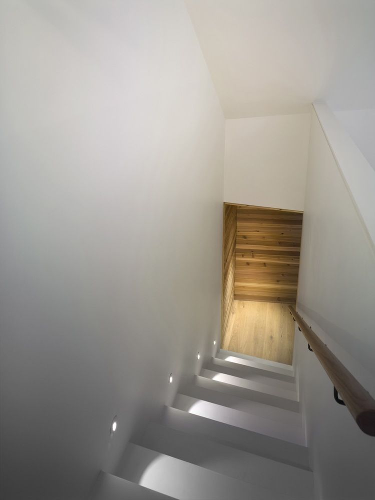 Dom posiada duże przeszklenia, świetliki dachowe i precyzyjnie rozmieszczone okna, które zapewniają maksymalny dostęp do światła dziennego oraz widok na otwarte niebo. Centralną część zajmuje kuchnia z jadalnią i salonem, a na końcach znajdują się przytulne sypialnie. Wszystko zaprojektowano z myślą o długowieczności – by dom starzał się z wdziękiem i służył rodzinie przez pokolenia.