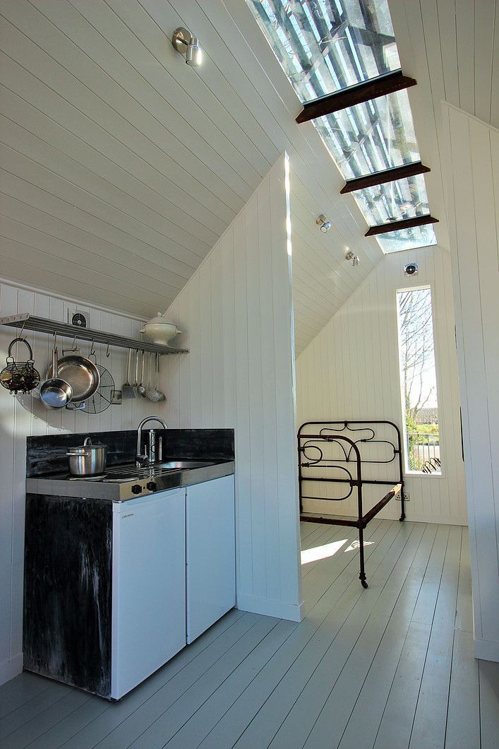 W Wielkiej Brytanii tiny house, czyli maleńkie domki, zyskują coraz większą popularność jako alternatywa dla tradycyjnego budownictwa mieszkaniowego. Jednym z najbardziej inspirujących projektów jest domek zaprojektowany przez Thomasa Alabastera z firmy Contemporary Shepherd Huts z Suffolk, specjalizującej się w projektowaniu i budowie niewielkich przestrzeni do życia. Konstrukcja nawiązuje do klasycznej chatki pasterskiej, jednak w nowoczesnym wydaniu – z zewnątrz obita jest galwanizowaną stalą, a dach z długim świetlikiem zapewnia dostęp do naturalnego światła przez cały dzień. Minimalistyczne, białe wnętrze – od podłogi po sufit – tworzy atmosferę spokoju i harmonii, kojarzącą się z ideą slow life oraz trendami takimi jak nowoczesna stodoła i życie blisko natury.