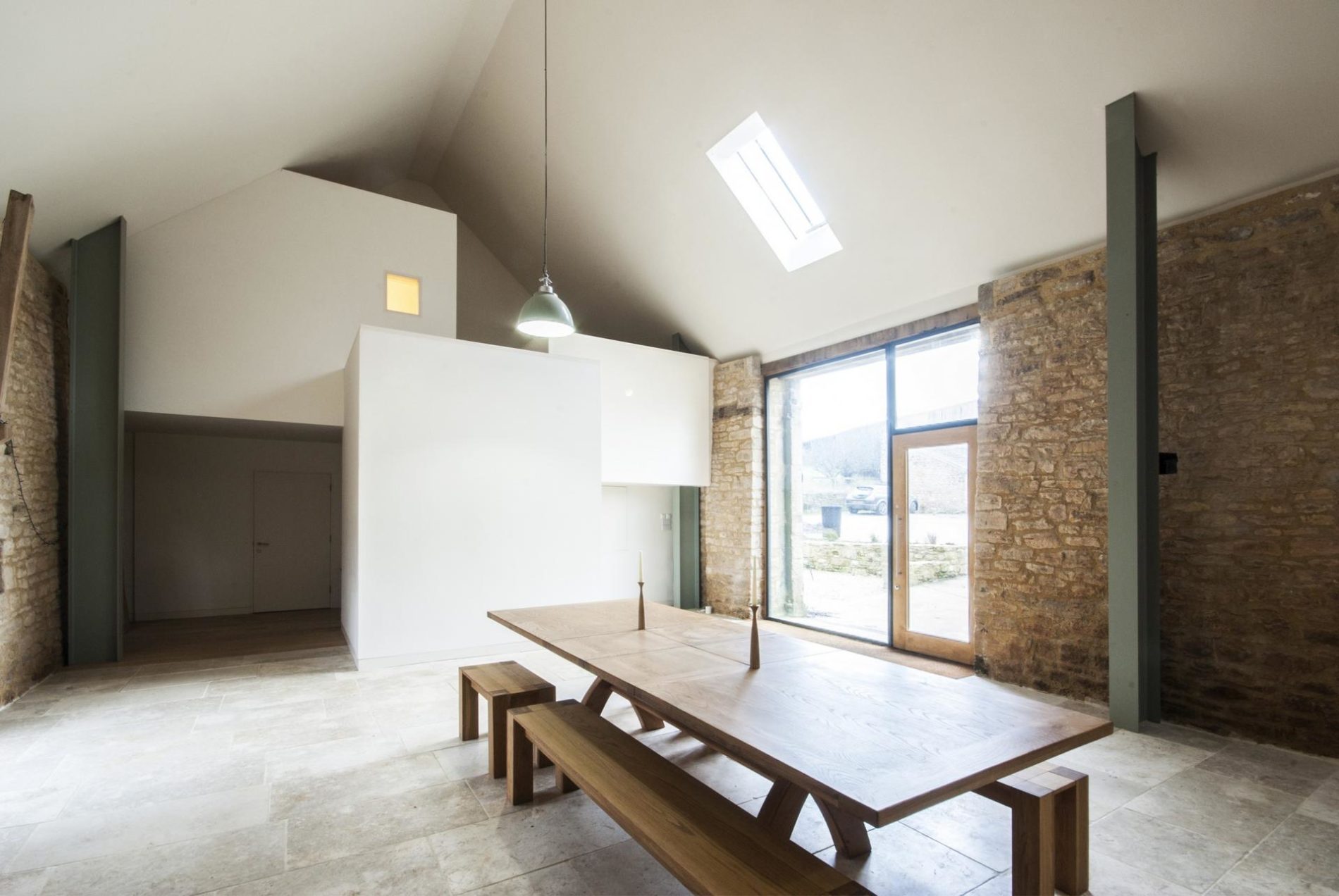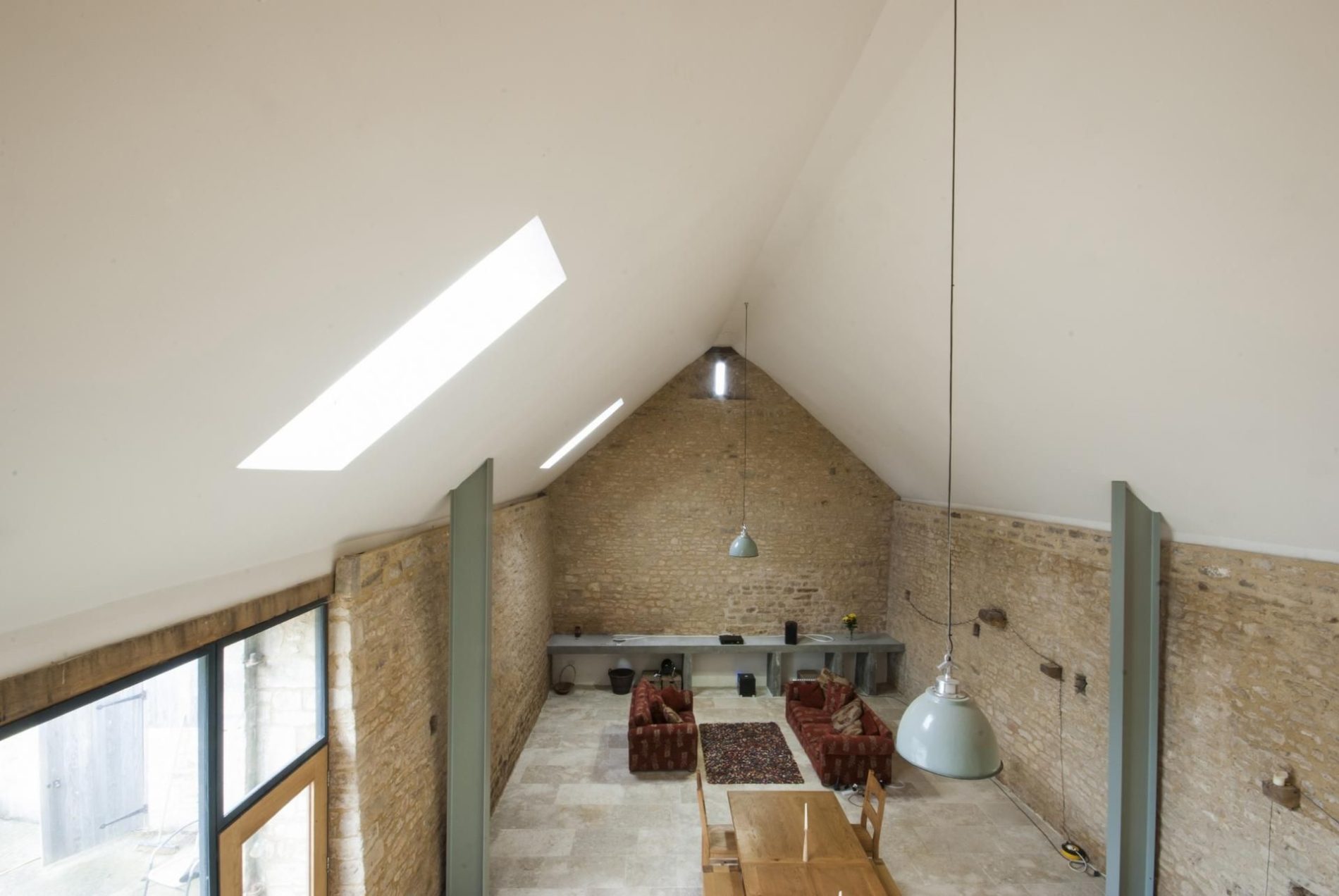 Piec opalany drewnem, który znajduje się w sąsiednim budynku zapewnia ciepłą wodę na całej farmie oraz podłączony jest do systemu ogrzewania podłogowego, jaki umieszczono w podłodze stodoły. W ten sposób udało się wprowadzić nowoczesne rozwiązania, nie naruszając wizualnie zabytkowego charakteru tego miejsca. Nowe okna i przeszklone drzwi mają cienkie, stalowe element futryny i osadzone są głęboko w murach, by zminimalizować ich wpływ na cały projekt oraz ograniczyć odbijanie się światła. Od strony północnej w nowym dachu wstawiono dodatkowy świetlik.