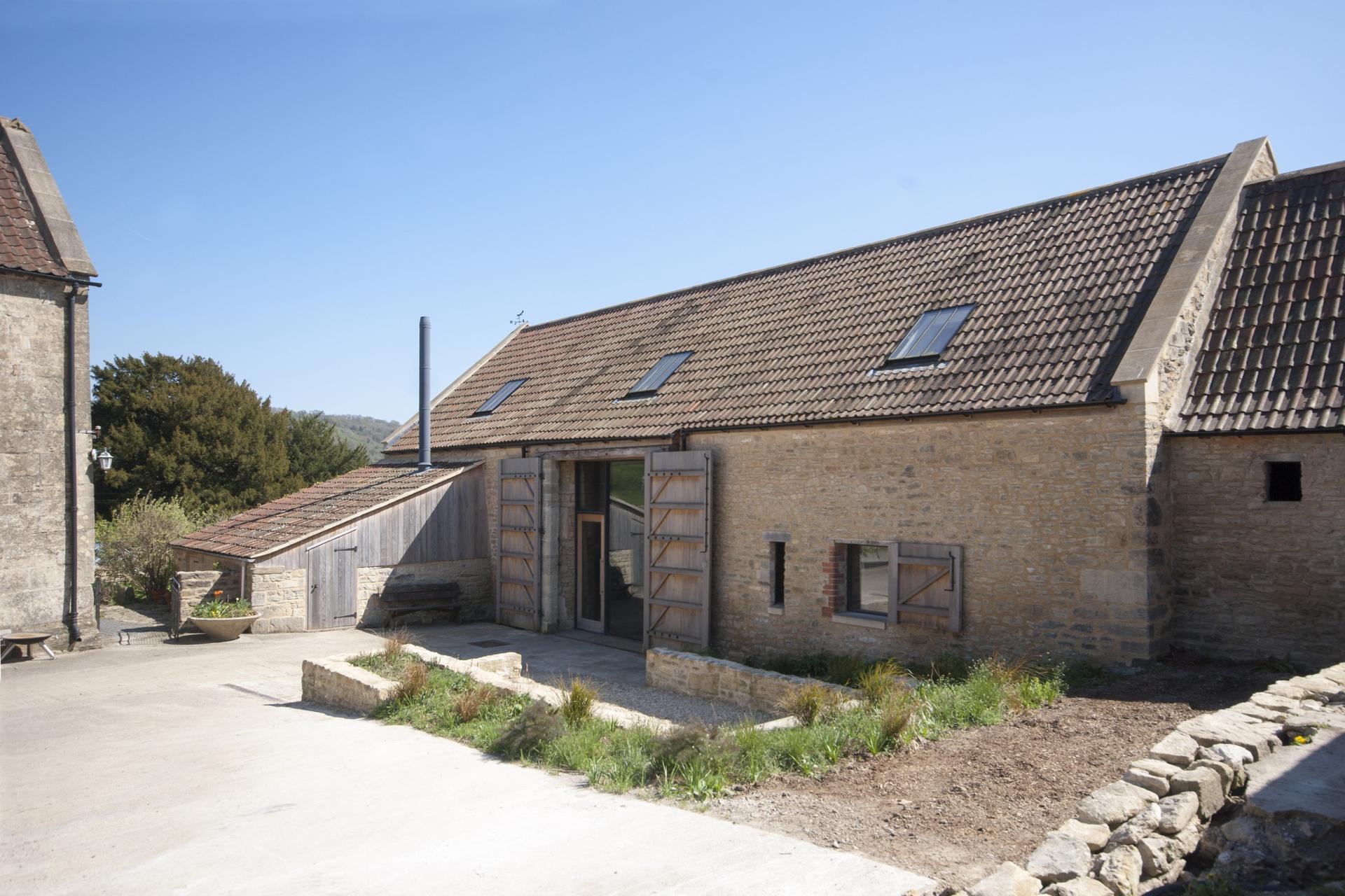 Court Farm znajduje się w dolinie Langridge, w pobliżu miasta Bath w Anglii – w miejscu, które słynie z pięknej przyrody i jest częścią „pasa zieleni” dla miast Bath i Bristol. Farma składa się z kilku zabudowań o różnych charakterze, wieku i jakości. W samym jej centrum stoją jednak budynki o znaczeniu zabytkowym – to XV-wieczny dom oraz XVII-wieczna stodoła, służąca niegdyś do młocki. stodoła, która od lat była bezużyteczna, była wyjątkowo zaniedbana i zniszczona. Renowacja przekształciła stodołę tak, by mogła pełnić funkcje dodatkowe dla głównego domu, mieszcząc WC i prysznic, biuro (które może być używane również jako tymczasowy pokój dla gości) oraz aneks kuchenny na parterze, z dwiema sypialniami i łazienką na antresoli. Nowe funkcje zostały ukształtowane na bazie białych, wolnostojących, drewnianych „pudełek”.