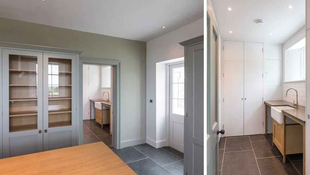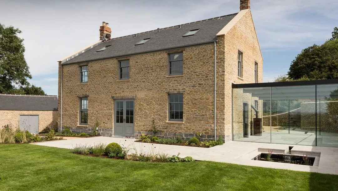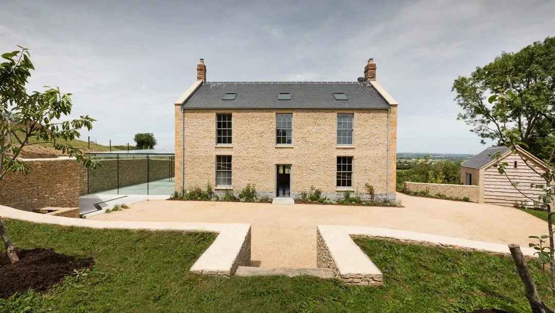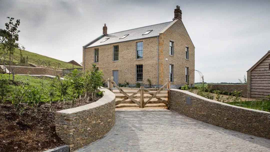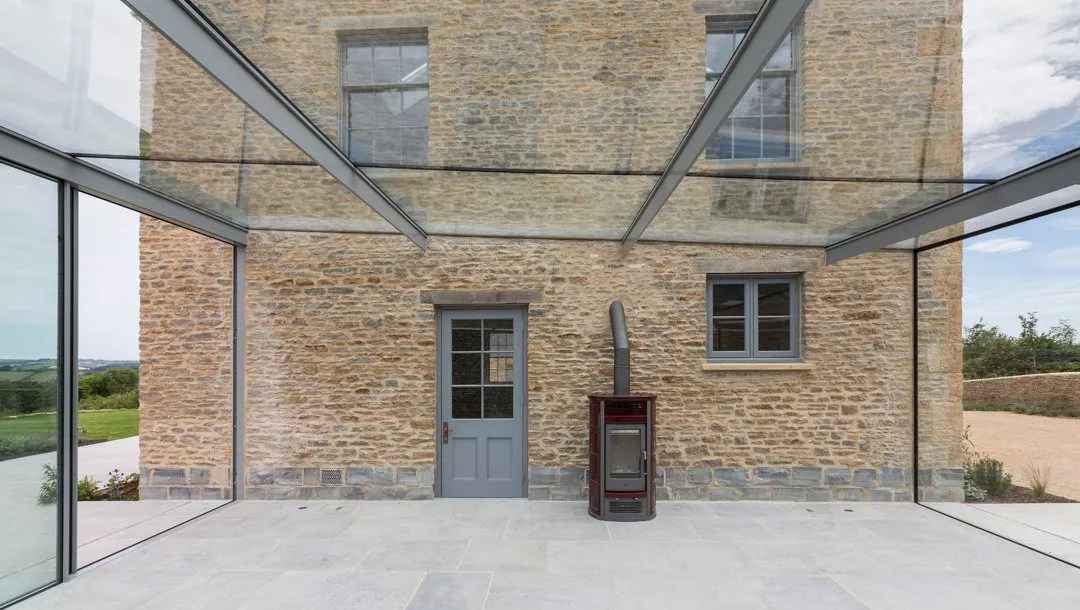 Punktem kulminacyjnym projektu jest przeszklona oranżeria z widokiem na ogród i przepływający sztuczny potok. To nawiązanie do poprzedniego domu, który również posiadał tego typu przybudówkę. Oranżeria pełni funkcję ogrodu zimowego, a w chłodne dni ogrzewana jest kozą w stylu rustykalnym. Na posesji znajduje się także budynek gospodarczy w tym samym stylu architektonicznym co dom główny, co podkreśla spójność całego założenia. Creech Hill to projekt, który łączy tradycję, nowoczesność i zrównoważoną architekturę, dając przykład, jak można tworzyć współczesne domy z duszą i szacunkiem do przeszłości.
