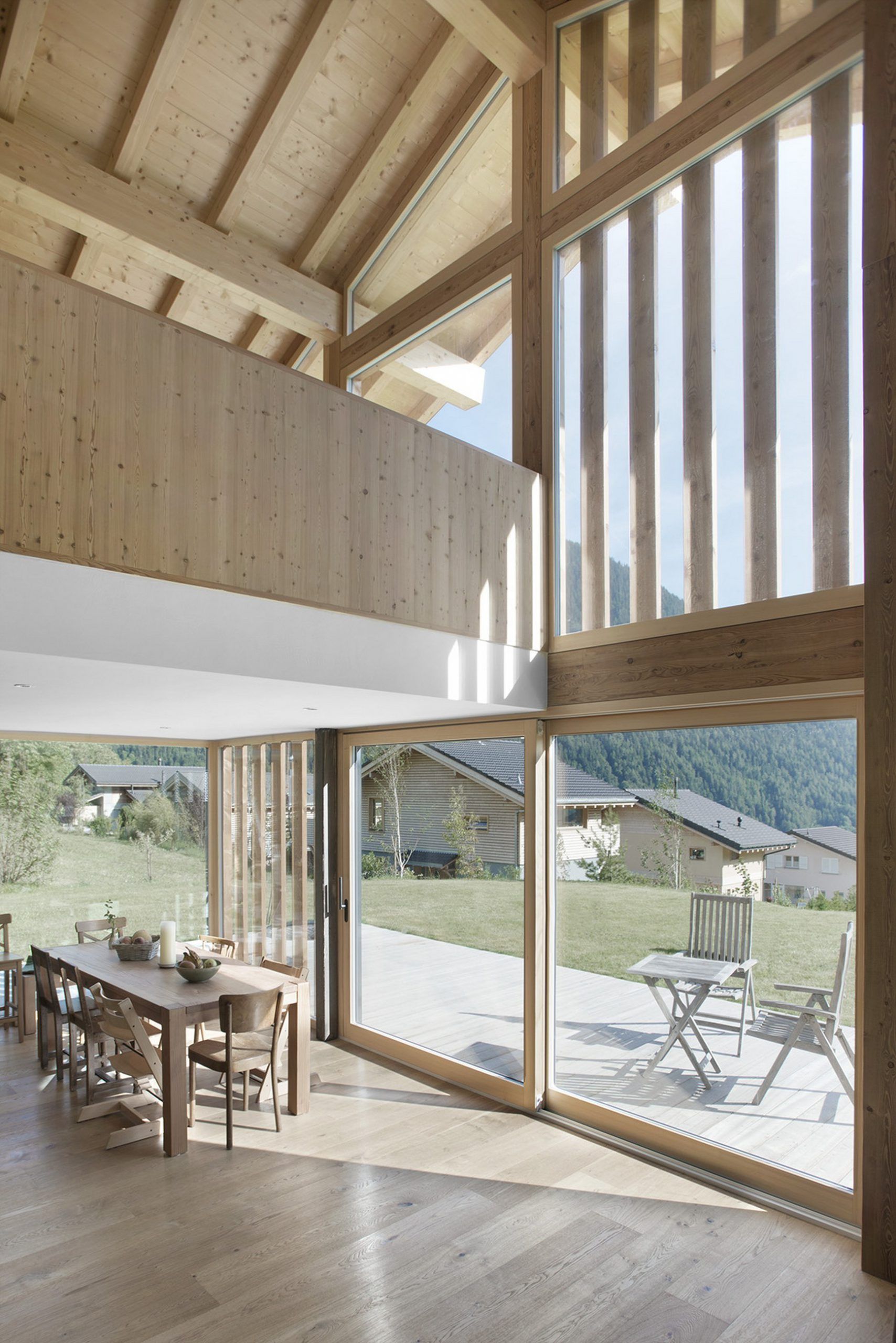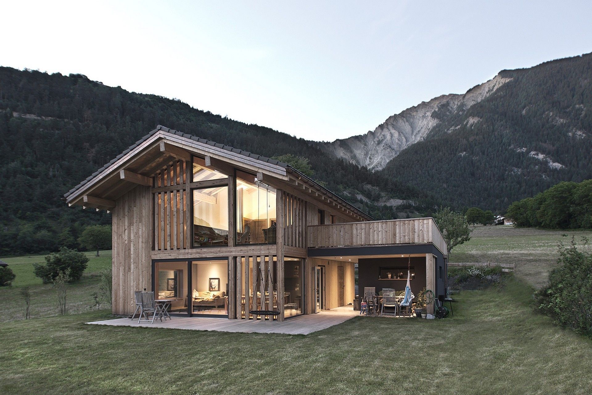 Alpejski dom zbudowano na skraju szwajcarskiej wioski Volleges, a jego mieszkańcy cieszą się niezwykłymi widokami na dolinę Entremont. Miejscowe regulacje prawne, które narzucają wykorzystanie drewna i elementów murowanych w takiej samej ilości zmuszają do szukania nowych rozwiązań skutkujących połączeniem tych dwóch materiałów, unikając jednocześnie powszechnie znanych modeli.