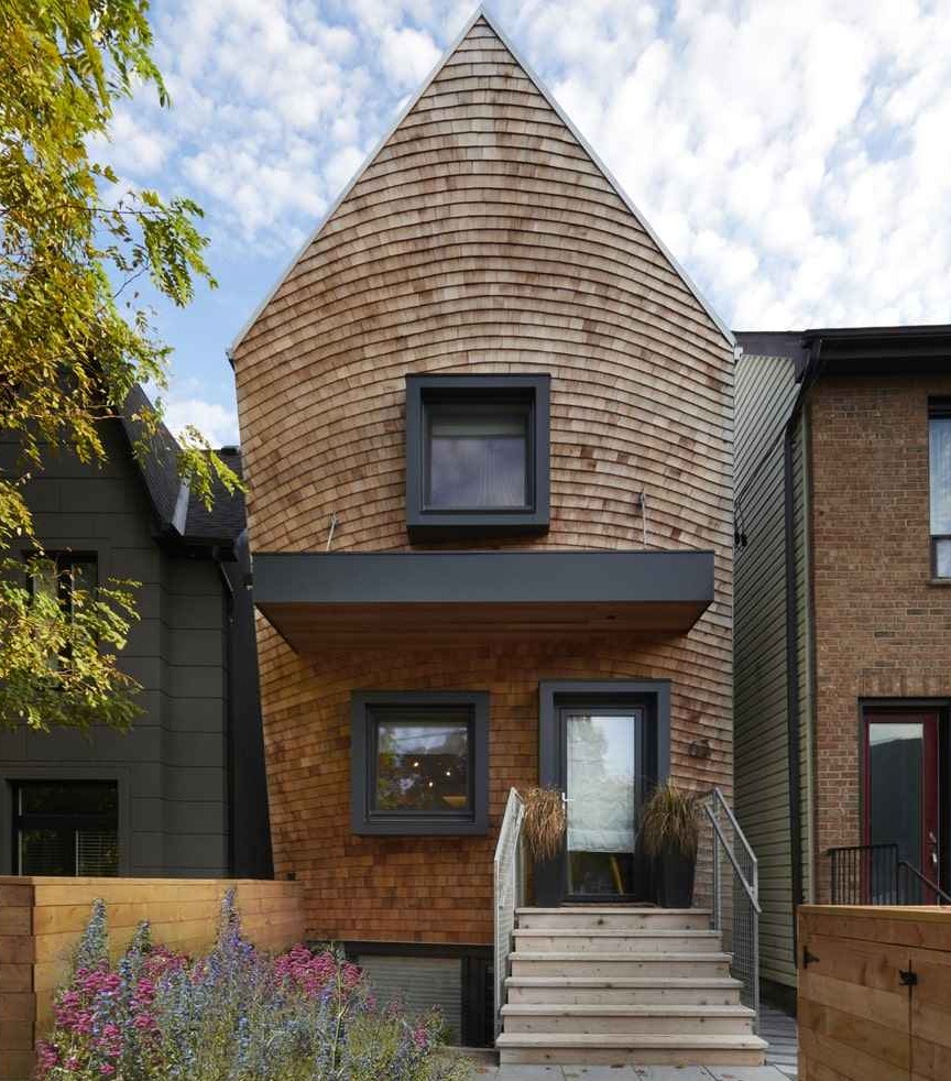 Curvy Eco Home to innowacyjny projekt autorstwa Craig Race Architecture, osadzony w miejskim kontekście jednej z dzielnic Toronto. Ten geometryczny, nowoczesny dom powstał na wąskiej działce między zabudowaniami szeregowymi, gdzie wcześniej znajdowała się niezagospodarowana przestrzeń. Pomimo unikalnej, zakrzywionej bryły, dom mieści się w narzuconych przepisami parametrach – takich jak wysokość, szerokość czy głębokość. Projekt idealnie wpisuje się w miejską siatkę zabudowy, a jego wyrazista forma stanowi świeży akcent na tle ponad 100-letnich domów. Architekci nazwali go z przymrużeniem oka nowoczesną stodołą – nawiązując do uproszczonego, ale odważnego podejścia do współczesnej architektury miejskiej.
