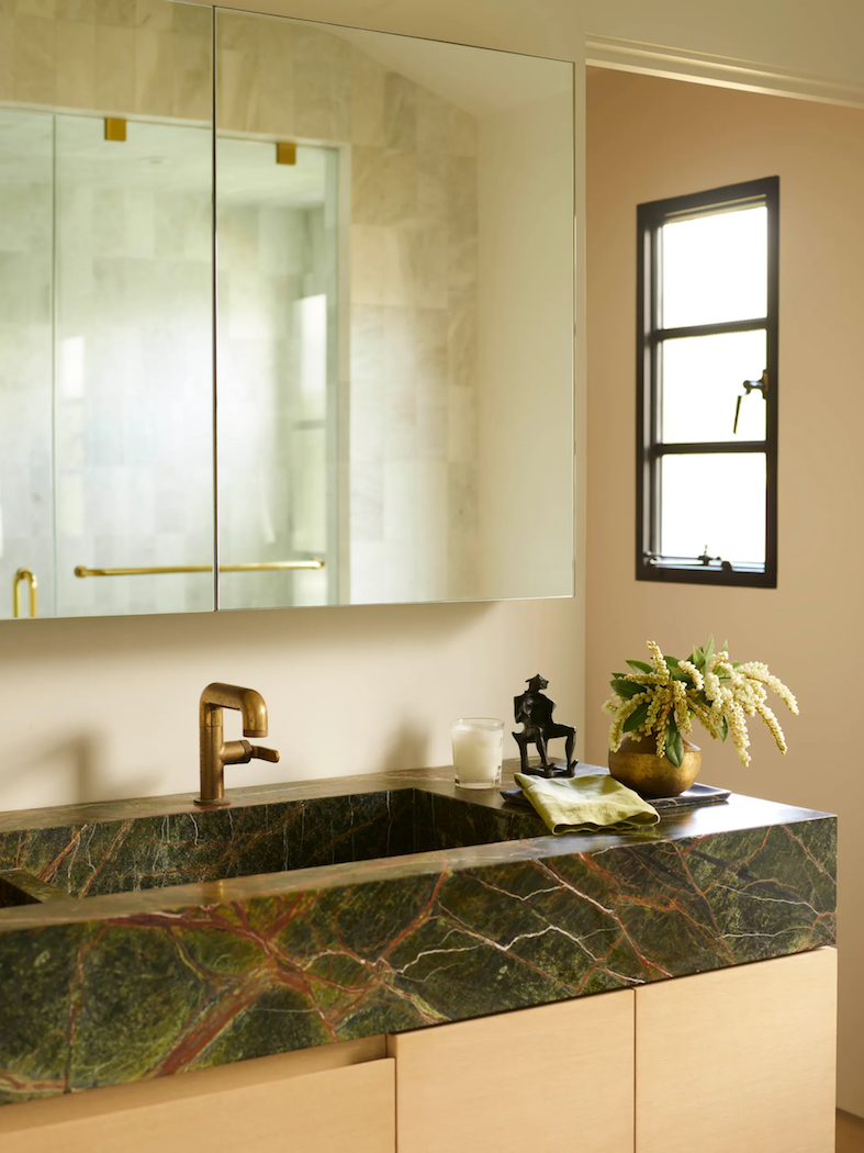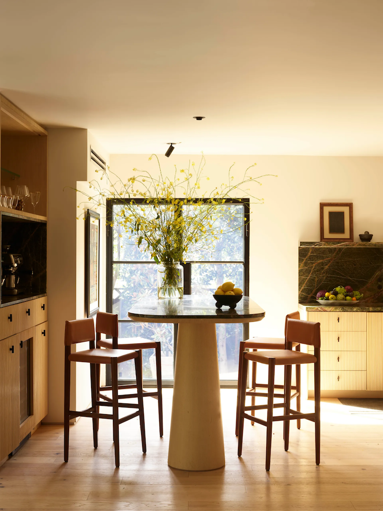 Mónica Calderón, projektantka, i Ezequiel Farca, architekt, po przeprowadzce z Meksyku do Los Angeles, osiedlili się w Beverly Hills, jednak ich serca skradła plaża w Santa Monica. Zamiast budować dom od podstaw, para postanowiła znaleźć nieruchomość z lat 40-tych XX wieku o powierzchni 418 metrów kwadratowych i przeprowadzić przebudowę, zachowując oryginalną strukturę budynku. „Sprzeciwiliśmy się wyburzeniu, bo chcieliśmy uszanować historię domu, zwłaszcza w kontekście wielu hiszpańskich rezydencji w okolicy” – mówi Calderón.