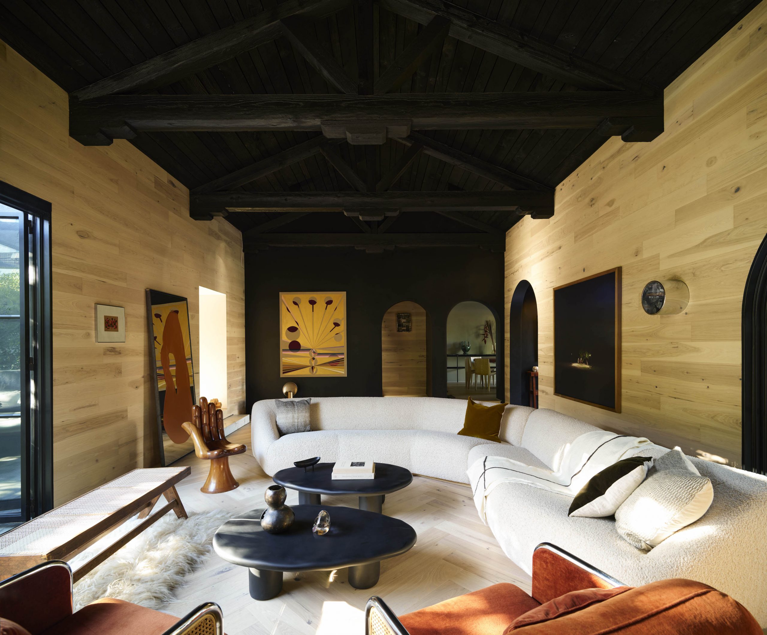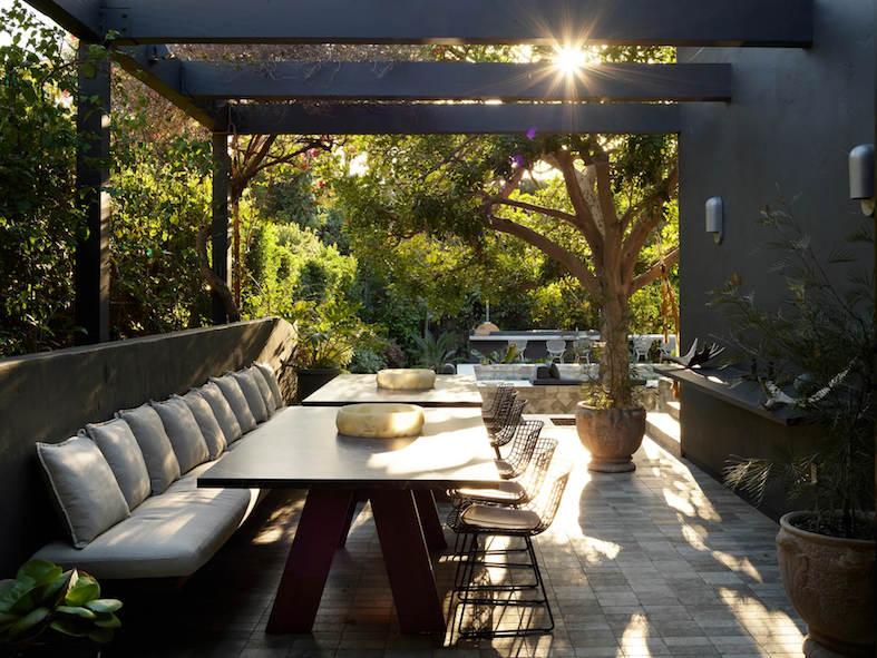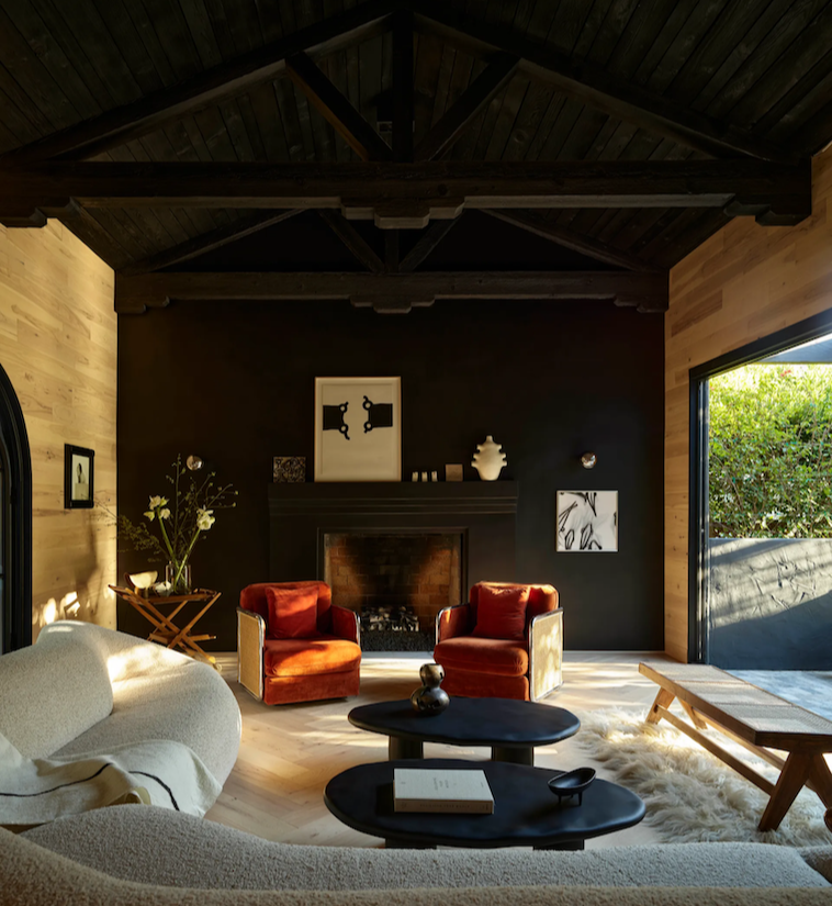 Ich plan zakładał stworzenie domu, który będzie w pełni odpowiadał rodzinnych potrzebom, zachowując jednocześnie kalifornijski urok i dodając elementy meksykańskiego designu. Efektem końcowym jest gustowna reinterpretacja klasycznego hiszpańskiego stylu z nowoczesnymi akcentami i odważnymi kontrastami. Para, znana z eksperymentowania w swoich projektach, postawiła na kontrastowe podejście, które stanowiło ich charakterystyczny znak. Największym wyzwaniem była decyzja o pomalowaniu domu na czarno, co okazało się strzałem w dziesiątkę. „Większość domów w Santa Monica jest pastelowa i klasyczna. Chcieliśmy stworzyć coś innego, coś, co wyróżnia się w tej okolicy” – dodaje Calderón.
