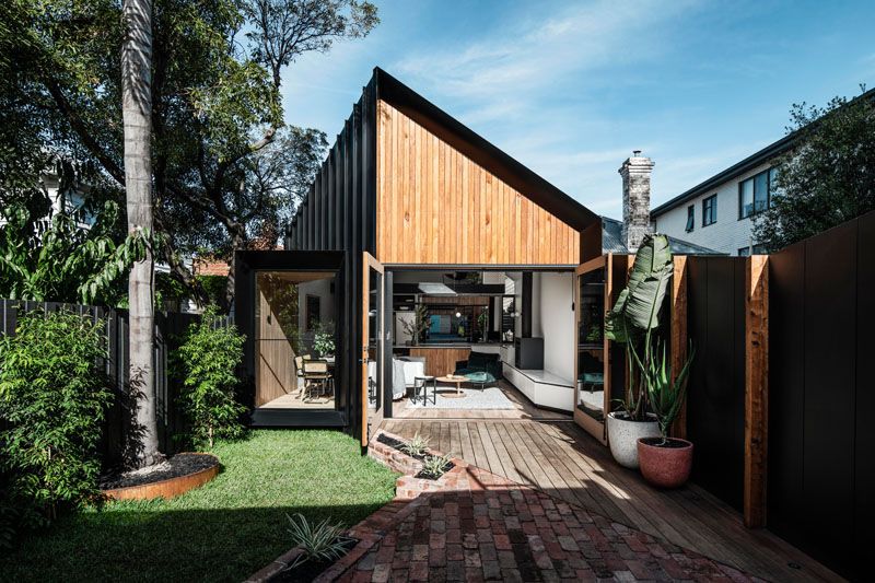 Australijskie studio architektoniczne FIGR zaprojektowało nowoczesną przybudówkę do jednego z domów w Melbourne. Budynek ma pochylony dach przykryty czarną blachą, która przechodzi na ścianę. Pozostała elewacja to deski odporne na wilgoć.
