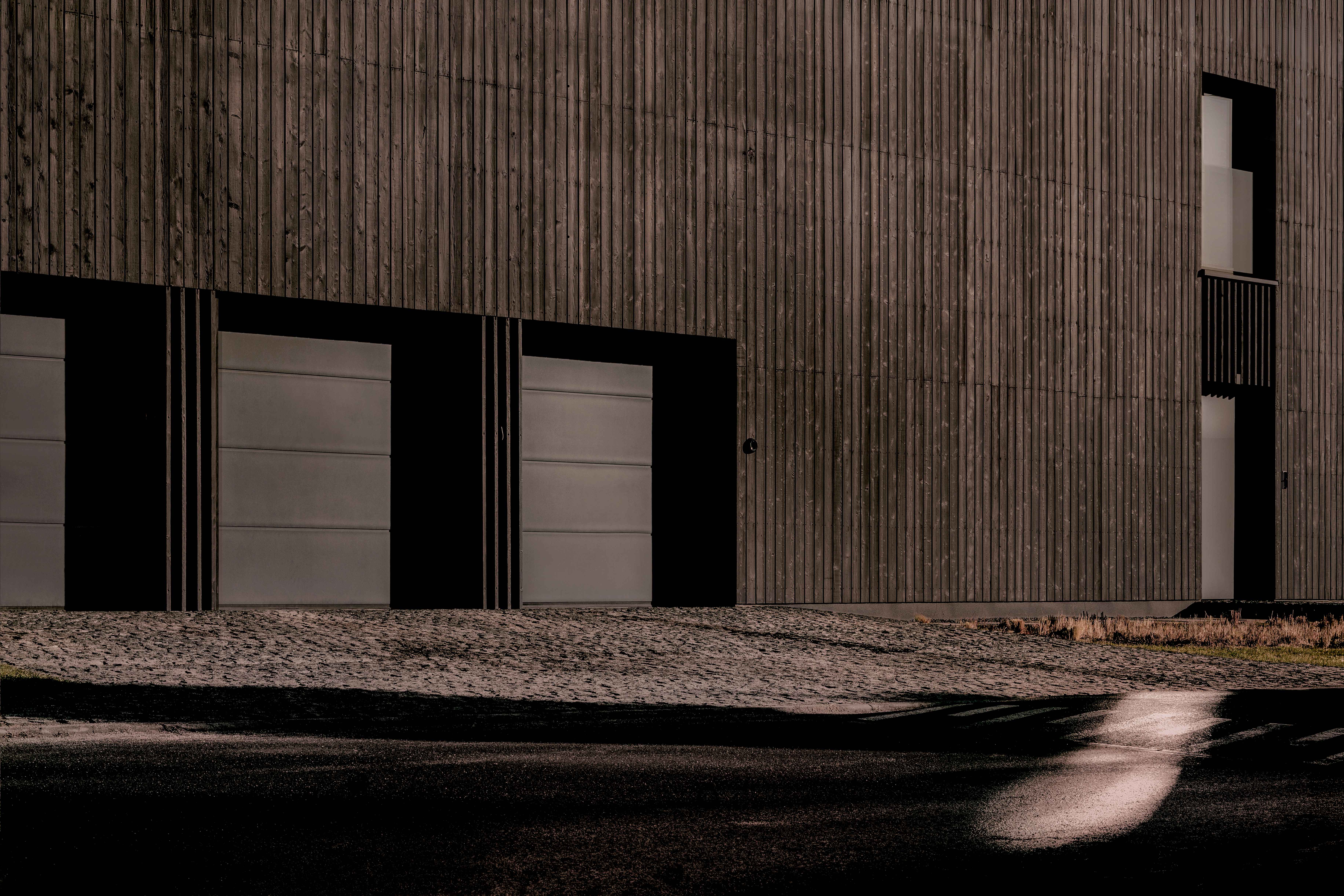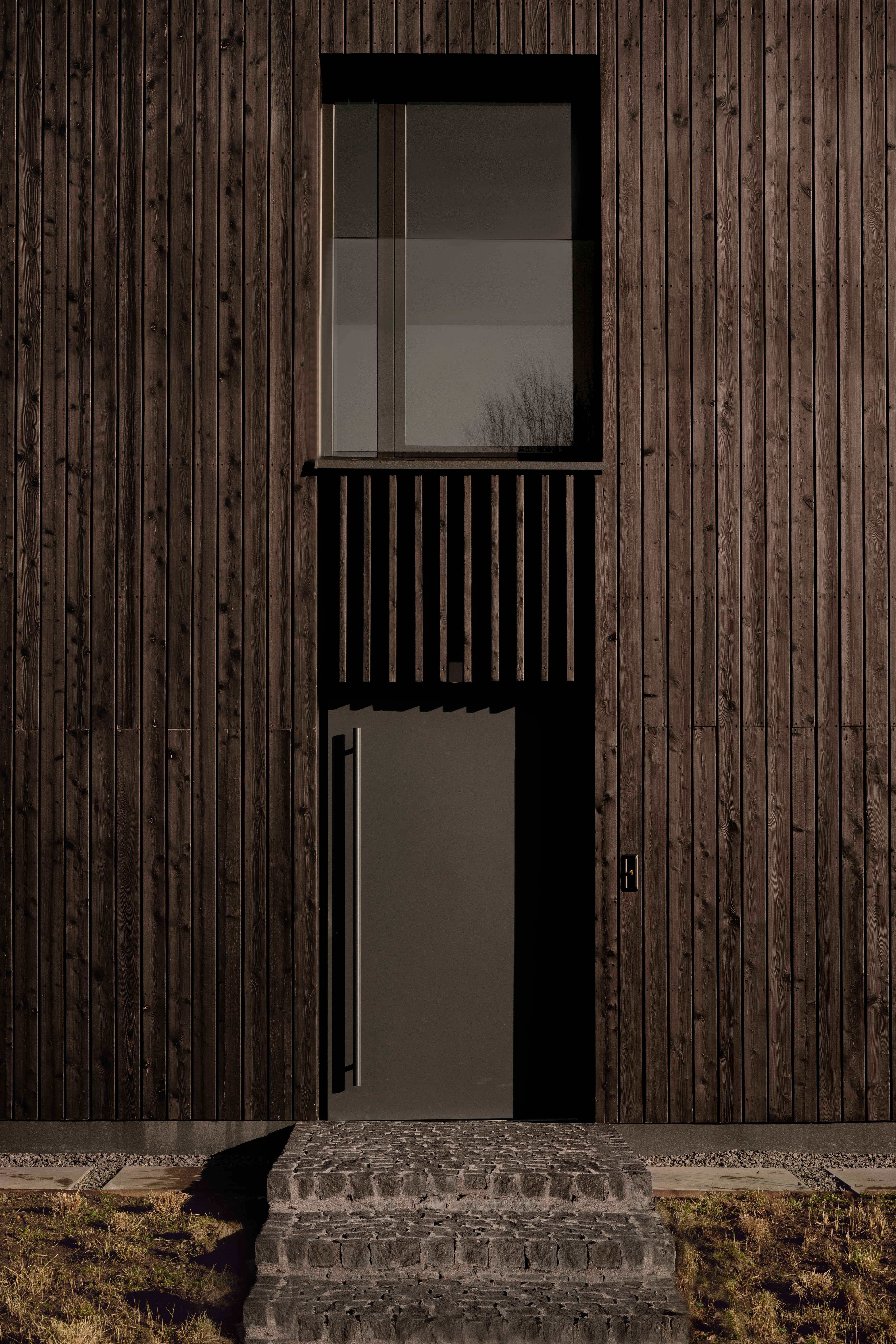 Obiekt ma dwa oblicza. Od strony ulicy pozostaje zamknięty, przecięty jedynie monumentalnymi otworami na wzór wrót do okolicznych stodół i gospodarstw. Nieliczne okna wpuszczają naturalne światło i zapewniają widok na strefę wejściową, dając domownikom możliwość dyskretnego sprawdzenia, kto nadchodzi.