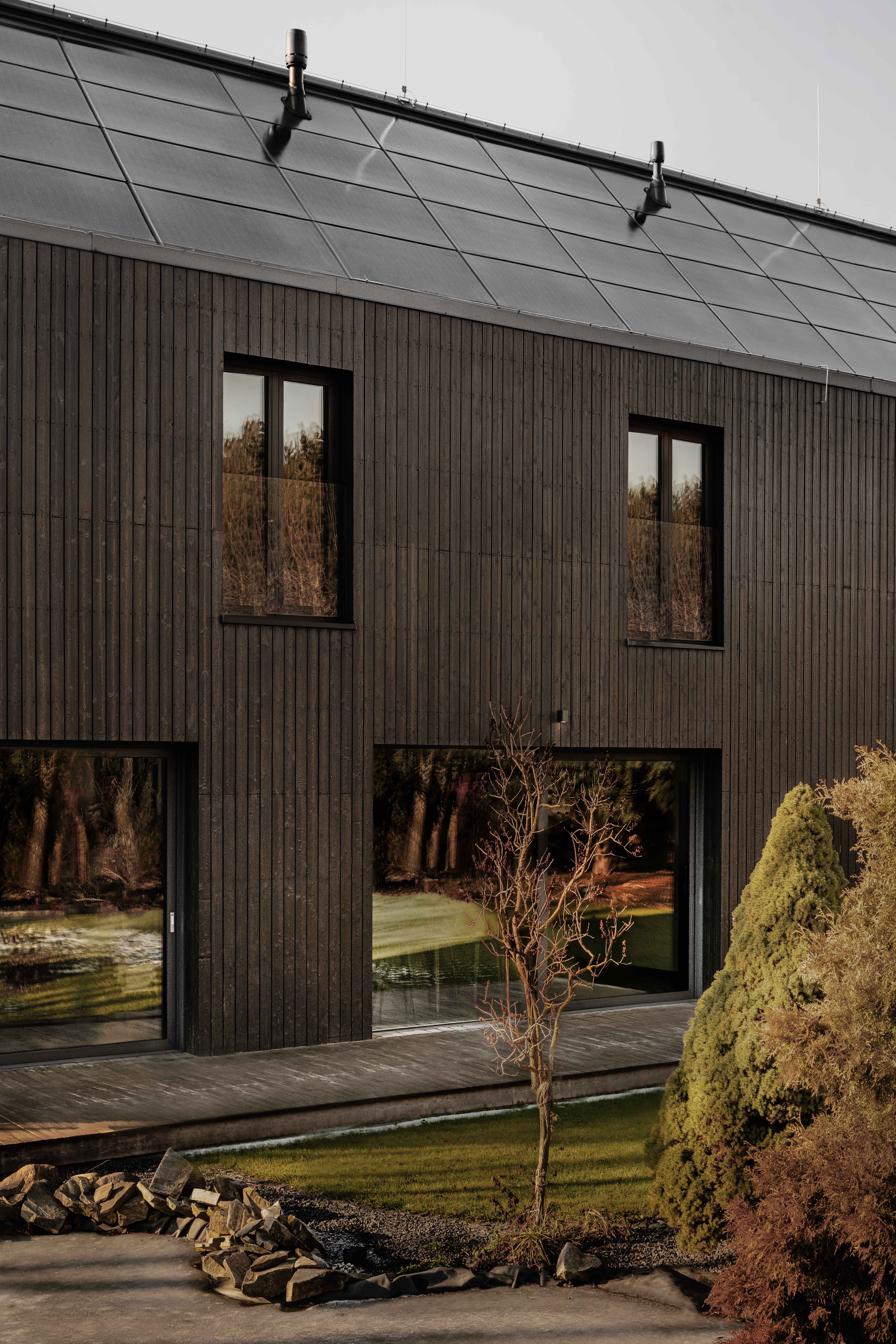Czarny Dom pod Wrocławiem, zrealizowany z wykorzystaniem desek Wood of Fire, to współczesna interpretacja wiejskiej zabudowy zagrodowej i gospodarczej. Jednym z wymogów projektowych było wpisanie obiektu w tradycyjne formy, tekstury i układy typowe dla zabudowań wiejskich. Podążając za tymi wytycznymi, stworzono bryłę minimalistyczną - prostą, ale niezwykle harmonijną.