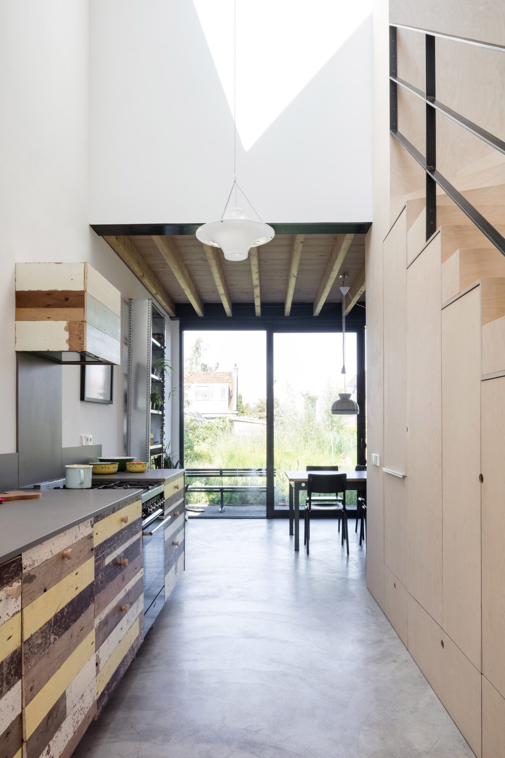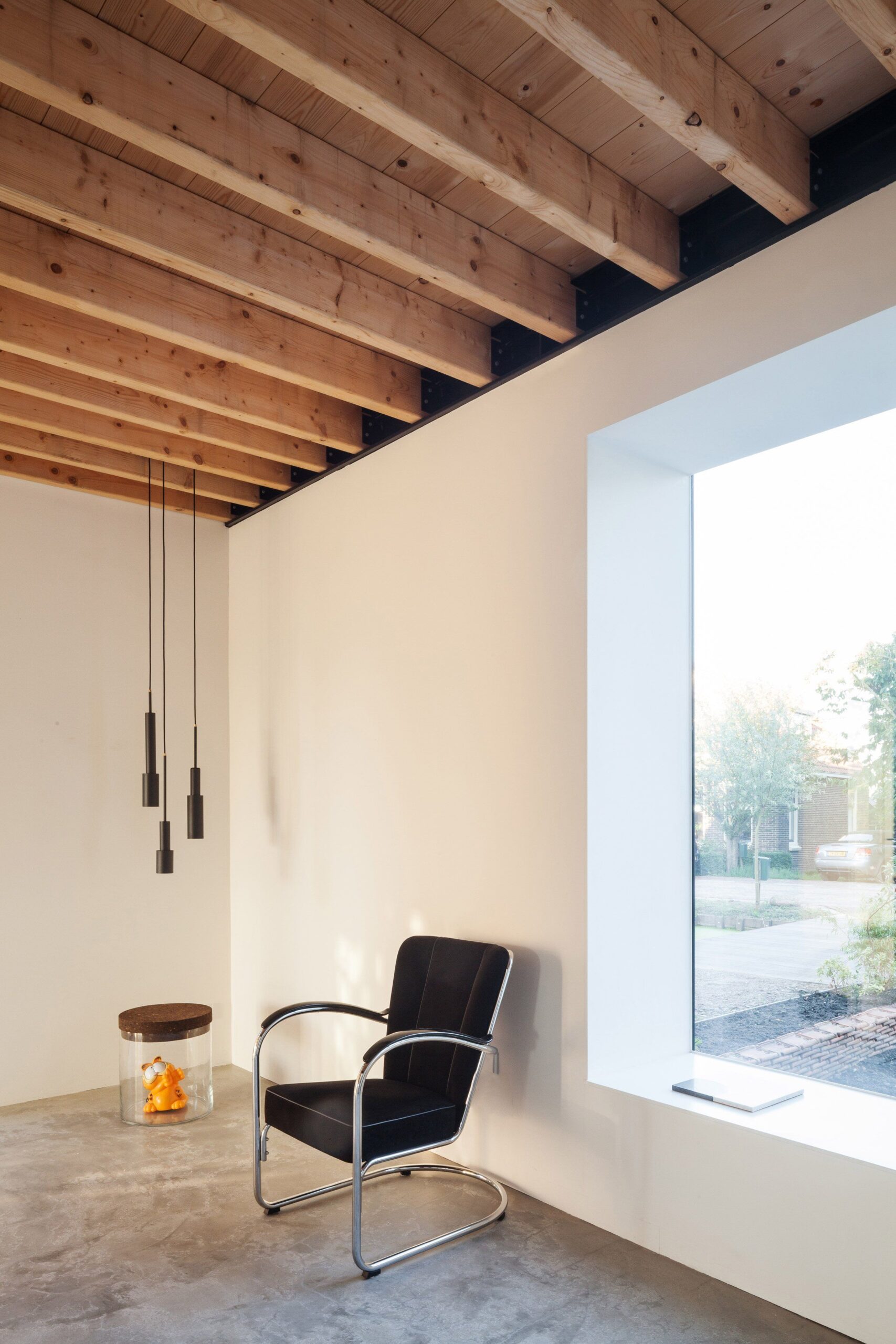 Dom o prostej nazwie „House MM” znajduje się w dawnej przemysłowej dzielnicy Amsterdamu, zwanej Amsterdam Noord. Na działce stał wcześniej stary, zrujnowany dom z cegły, który miał ogromnie „zagracone wnętrze”. Firma Chris Collaris Architects miała pracować na tej samej powierzchni, jaką miał stary dom, czyli na 60 m2 i w ten sposób zaprojektowała prosty budynek, który maksymalnie wykorzystuje swą powierzchnię, tworząc wrażenie zaskakującej przestronności. Zespół architektów zdołał stworzyć trzy poziomy w domu, który wygląda jakby miał dwa piętra, wpuszczając antresolę pod stromy dach. Dach z dwóch stron wykracza poza bryłę główną budynku, ale z jednej sięga dalej, tworząc osłoniętą ścieżkę, która prowadzi do głównego wejścia. „Linie dachu musiały mieć ograniczoną wysokość” – wyjaśniają architekci. „Wypuszczając niższe części dachu poza bryłę główną budynku, wyższy poziom domu podnosi się, zapewniając wysokie sufity na każdym poziomie domu i pozwalając na stworzenie dodatkowej przestrzeni na strychu.”