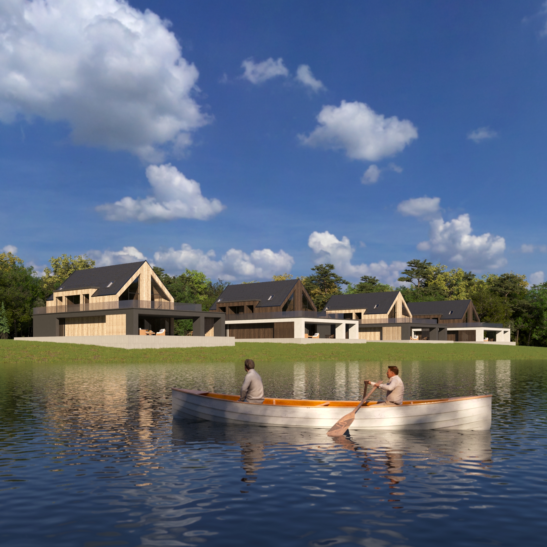 W malowniczym otoczeniu jeziora, w pobliżu Brodnicy, powstanie kameralne osiedle składające się z czterech nowoczesnych stodół. Projekt, stworzony przez pracownię architektoniczną BIAMS, to połączenie minimalistycznej formy, funkcjonalności i doskonałego wpisania w naturalne otoczenie lasu oraz linii brzegowej.