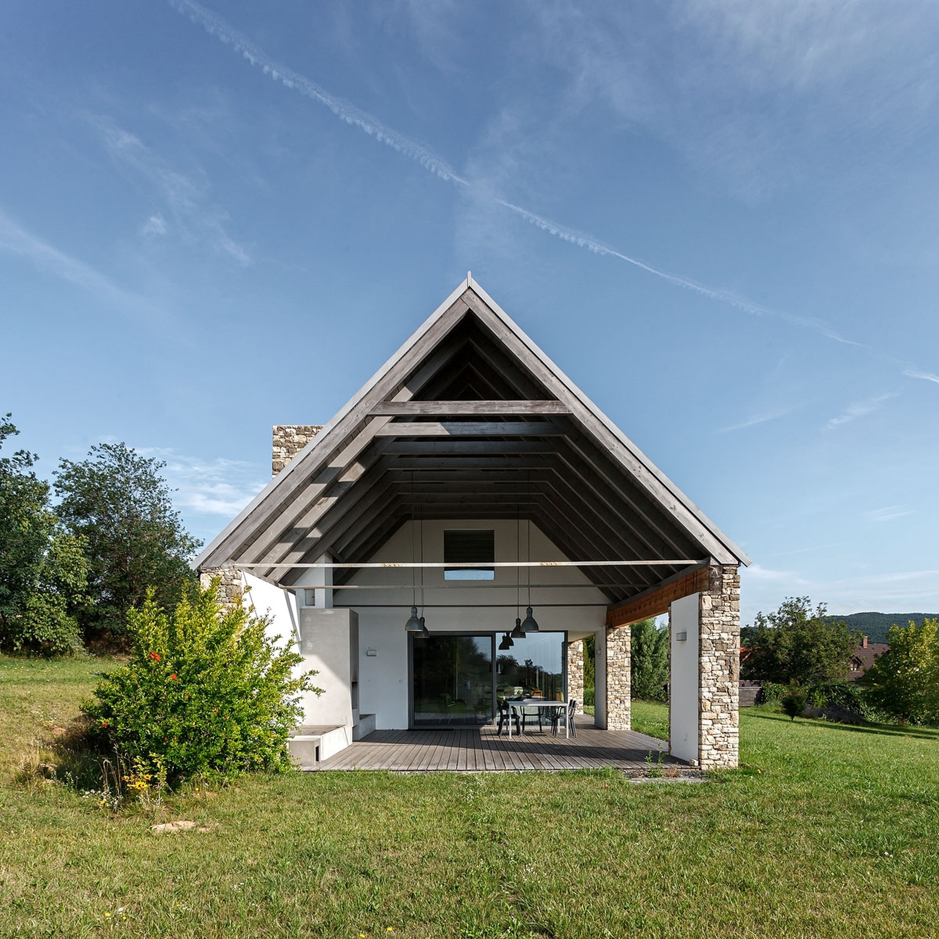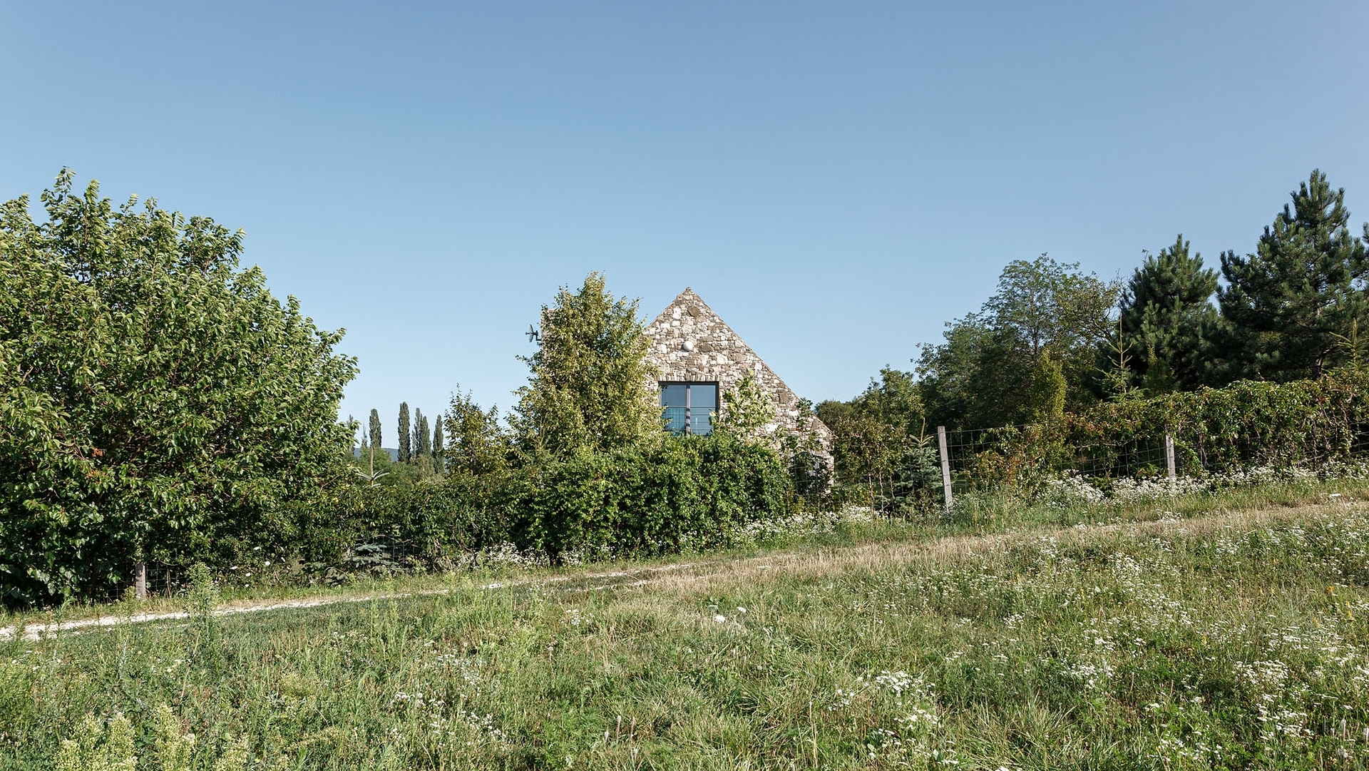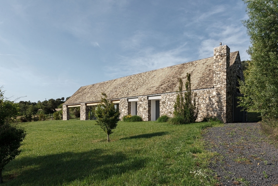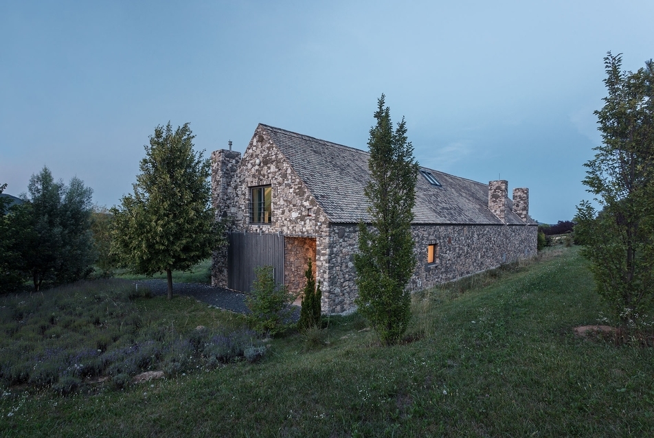 Na skraju wsi Mindszentkálla, z dala od miejskiego zgiełku, wznosi się kamienna nowoczesna stodoła, zaprojektowana przez renomowane studio Váncza Művek. Usytuowana na szczycie wzgórza, wtapia się w krajobraz Kotliny Káli, łącząc surowość naturalnych materiałów z minimalistycznym podejściem do architektury.
