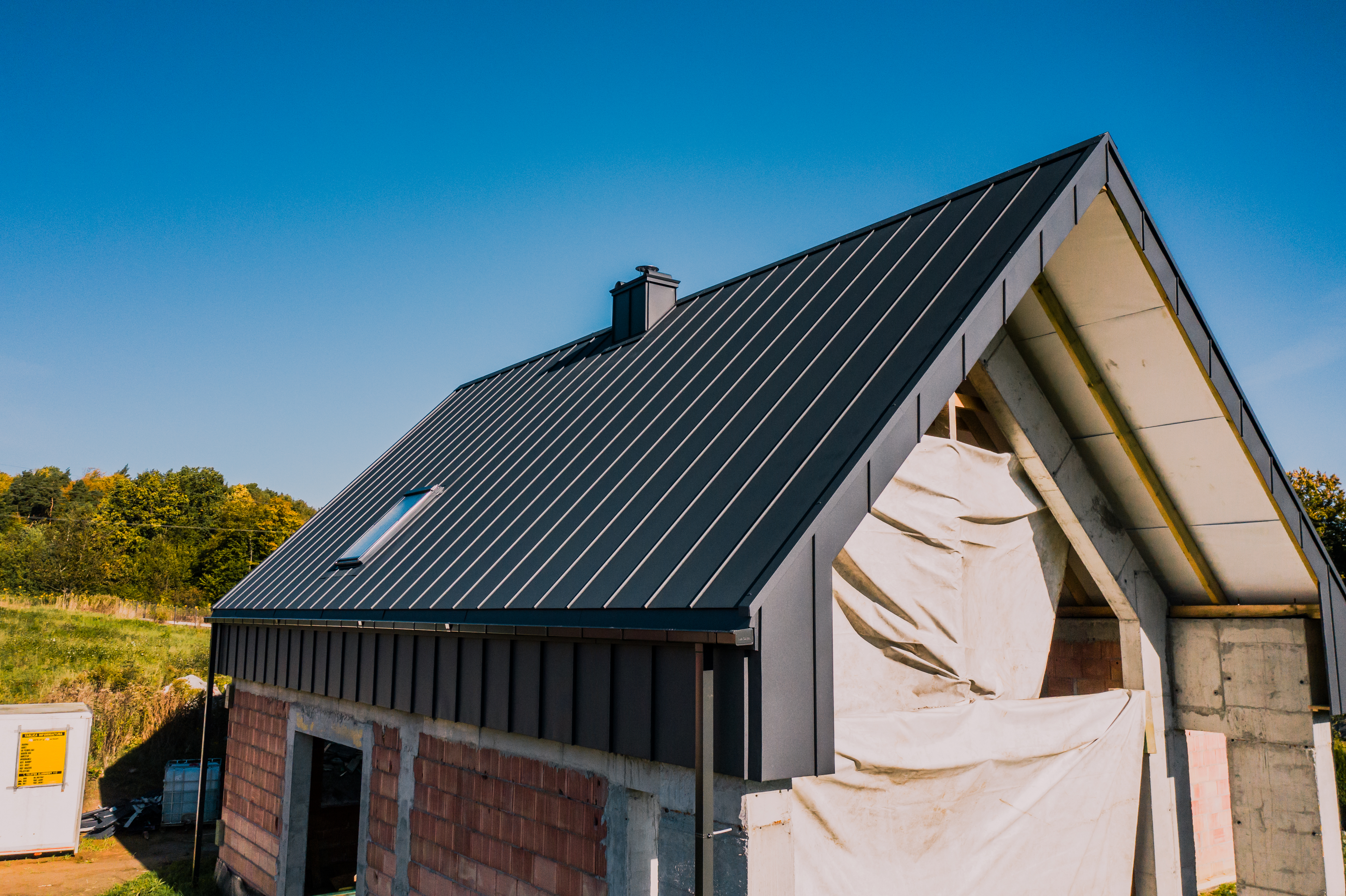 Dach wykonano z blachy na rąbek stojący – wyjątkowego materiału, który daje wiele możliwości aranżacyjnych, idealnie wpisując się w charakter nowoczesnych stodół. Warto jednak pamiętać, że takie pokrycie wymaga precyzji i wprawy wykonawcy. Przed wyborem ekipy konieczne jest sprawdzenie jej doświadczenia w pracy z tym materiałem.