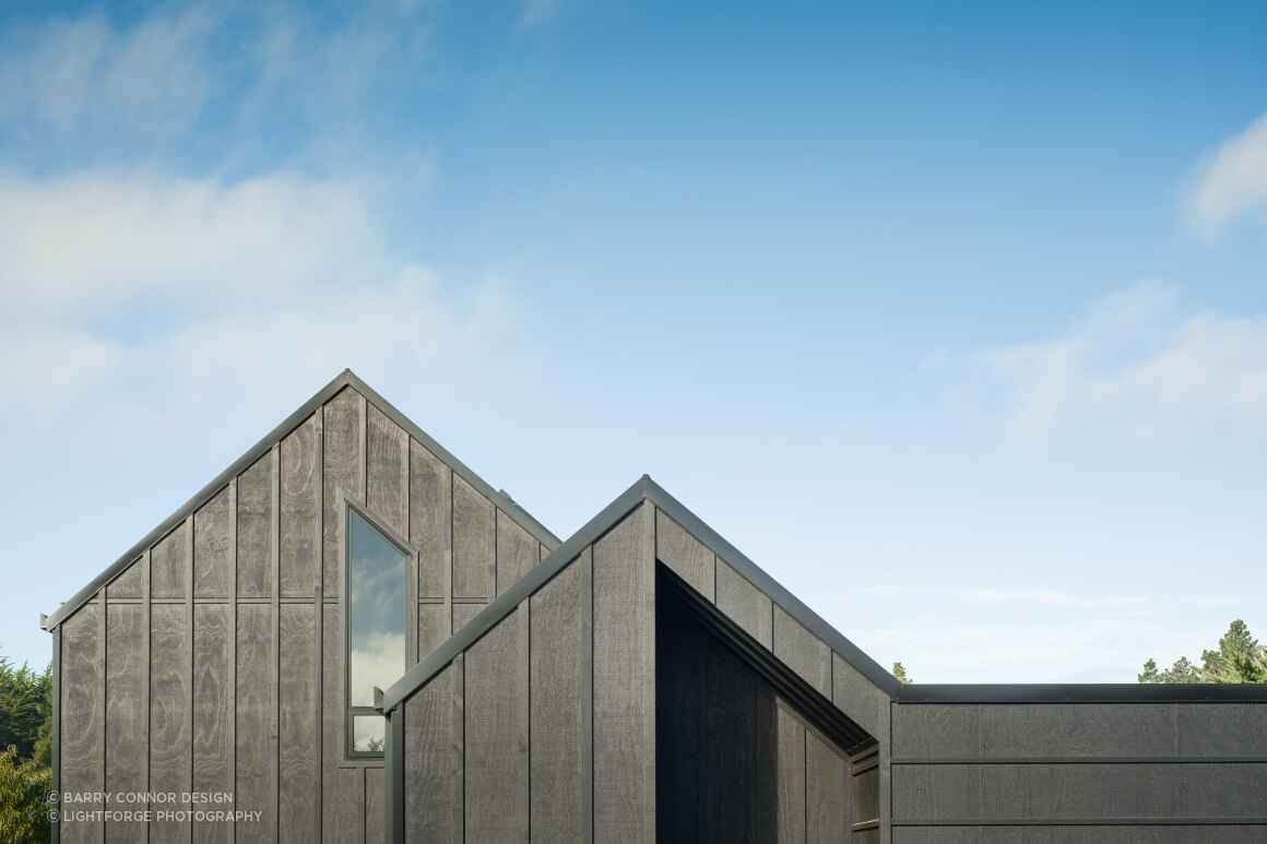 Architekci z pracowni Barry Conor Design zaprojektowali dom jako współczesną interpretację tradycyjnej architektury nadmorskiej. Na parterze zlokalizowano główne przestrzenie dzienne oraz prywatny apartament właścicieli, natomiast piętro przeznaczono na dodatkowe sypialnie i łazienkę, przygotowane dla rodziny i przyjaciół. Funkcjonalny układ zapewnia wygodę użytkowania o każdej porze roku, a duże przeszklenia wprowadzają do wnętrza naturalne światło i podkreślają widok na otaczającą naturę.