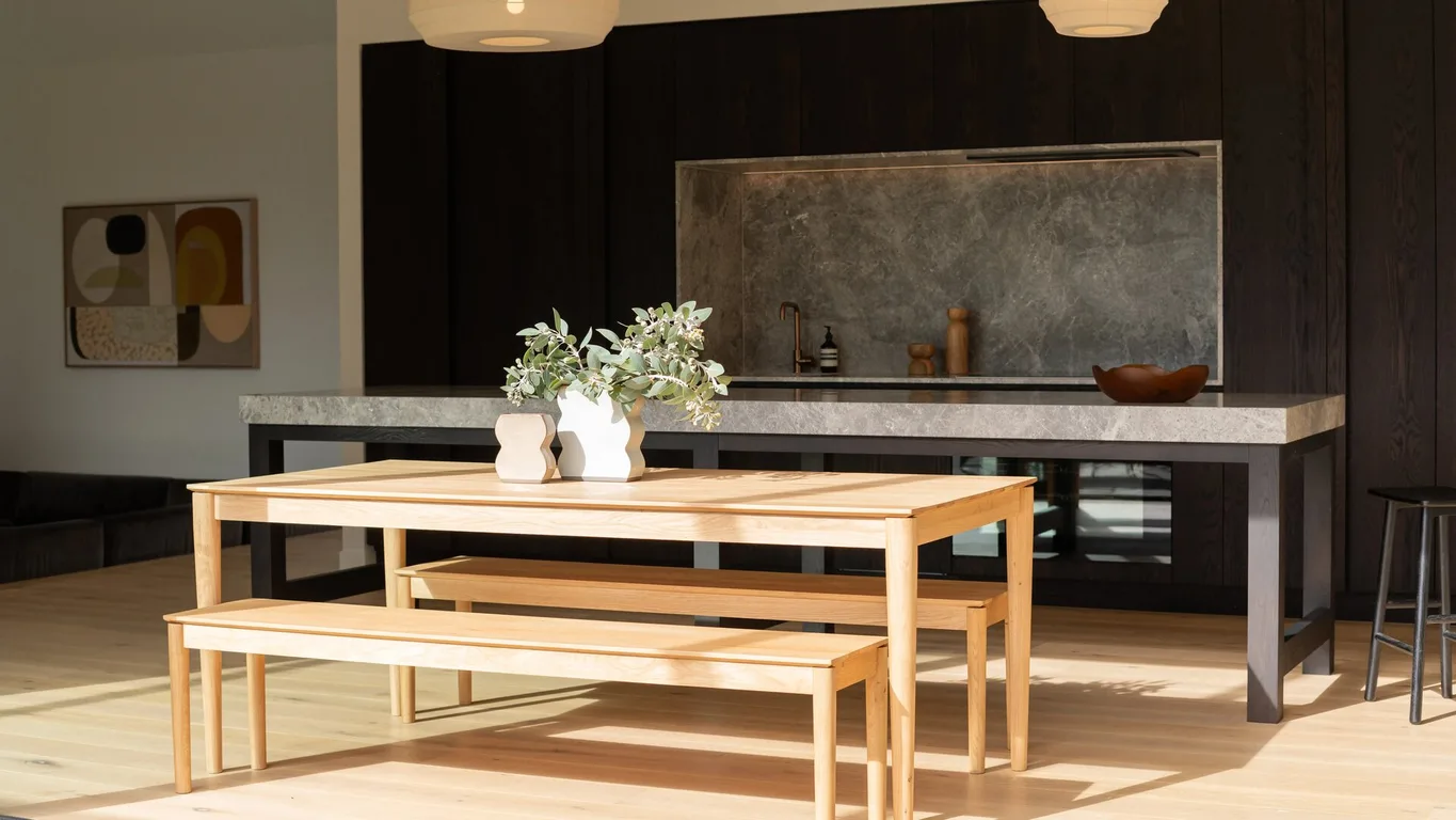 Choć Daylesford Project zachwyca czarną, nowoczesną sylwetą, jego wnętrza pozostają spokojne, przyjazne i pełne naturalnych akcentów. To przestrzeń, która łączy wyrazistą architekturę stodoły z funkcjonalnością i elegancją współczesnego domu – idealne miejsce do odpoczynku, spotkań i celebrowania codzienności.