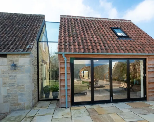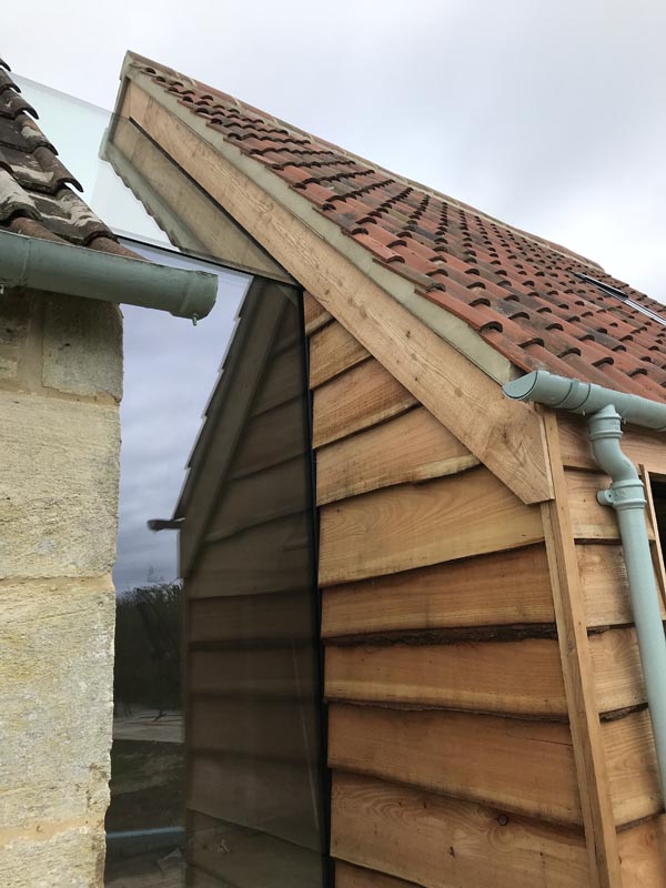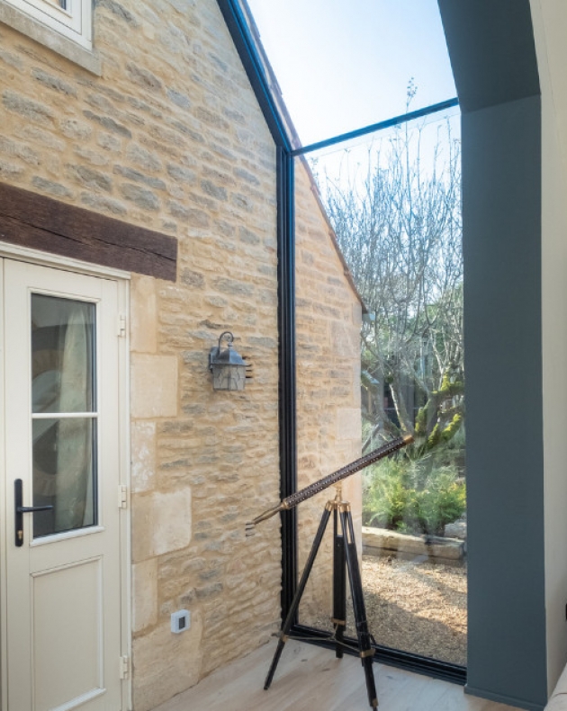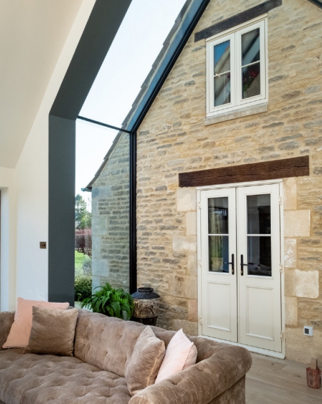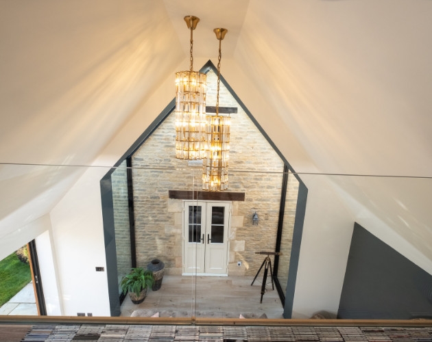 Posiadłość w Down Ampney, położona na terenie dawnego domu wiejskiego Laines, została poddana nowoczesnej rozbudowie, która pozwoliła na powiększenie przestrzeni życiowej, zachowując przy tym unikalny urok tradycyjnej kamiennej fasady Cotswold. W celu zachowania harmonii pomiędzy nowym a istniejącym budynkiem, zastosowano współczesne produkty przeszklenia, które subtelnie łączą historyczną strukturę z nowoczesnym podejściem do architektury. Szklany łącznik, zaprojektowany w celu połączenia nowej dobudówki z oryginalnym domem, stanowi wyraźną wizualną separację między zabytkową architekturą a nowoczesnymi elementami.