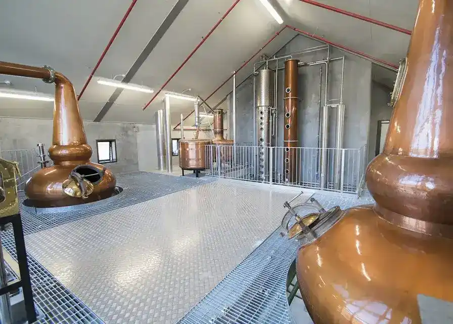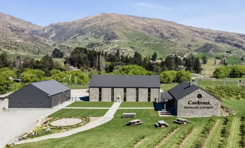Dwa główne budynki, wyłożone naturalnym kamieniem, nawiązują do stylu wiejskich zabudowań regionu. W jednym z nich mieści się recepcja, kawiarnia oraz sala degustacyjna, w której odwiedzający mogą poznać produkty destylarni i historię Cardrona Valley. Drugi obiekt skrywa działającą destylarnię, rozciągającą się na dwóch kondygnacjach. Centralnym punktem wnętrza są miedziane alembiki, wykonane w Szkocji – symbol tradycji i rzemieślniczego kunsztu. Takie połączenie lokalnego charakteru i globalnego doświadczenia tworzy unikalny klimat miejsca.