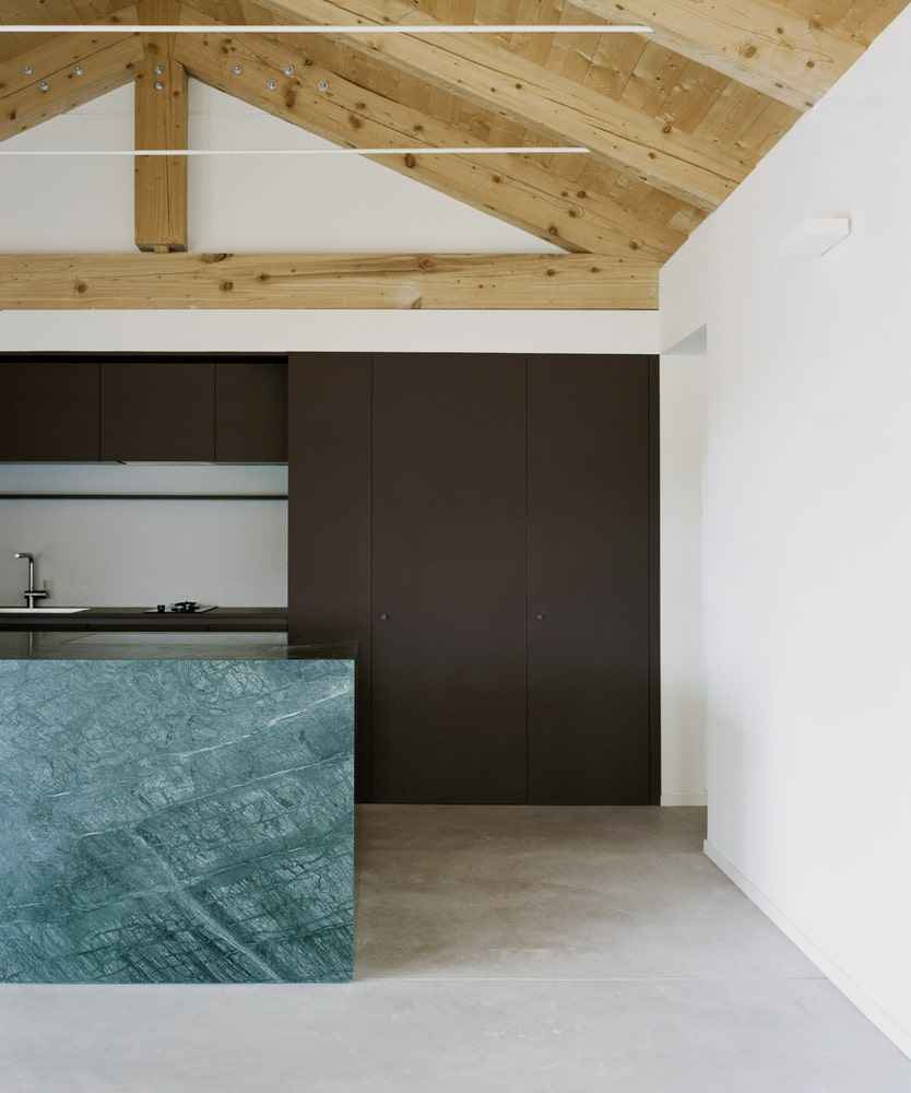 Materiały budowlane użyte w Cascina Otto House są świadomym nawiązaniem do lokalnego dziedzictwa i kontekstu miejsca. Na elewacjach odsłonięto oryginalny kamień Langa, wzbogacony o wstawki z cegły, co nadaje całości rustykalnego charakteru. Nowe elementy – takie jak betonowe chodniki, krawężniki i podłogi – harmonizują z istniejącą strukturą, tworząc spójną i ponadczasową architekturę. Na zboczu ogrodu zaprojektowano basen typu infinity, z którego tafla odbija błękit nieba i rozciągające się w tle winnice regionu Piemontu. To wyjątkowe miejsce pokazuje, jak poprzez szacunek do przeszłości i świadome projektowanie można stworzyć współczesny, komfortowy i ekologiczny dom z charakterem.