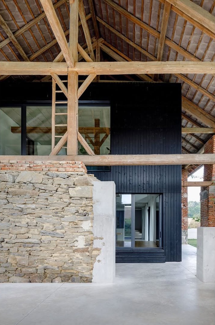 Projekt wyróżnia się prostotą i powściągliwością nowej architektury, która współgra z historyczną strukturą ceglaną stodoły. To przemyślane połączenie przeszłości z teraźniejszością podkreśla unikalny charakter przestrzeni, tworząc funkcjonalne i estetyczne miejsce do życia dla wielu pokoleń.