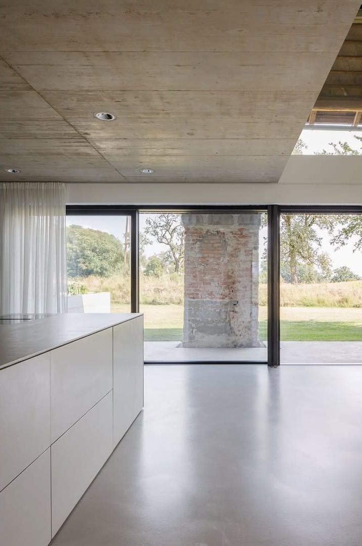 Przemyślane oddzielenie starych i nowych elementów generuje strefę przejściową między wnętrzem a otoczeniem, oferując nowe perspektywy – zarówno na krajobraz, jak i na historyczną konstrukcję. Architektoniczne połączenie nowoczesnej bryły z zachowanymi filarami cegłowymi tworzy przestrzenie międzyludzkie i otwarte.