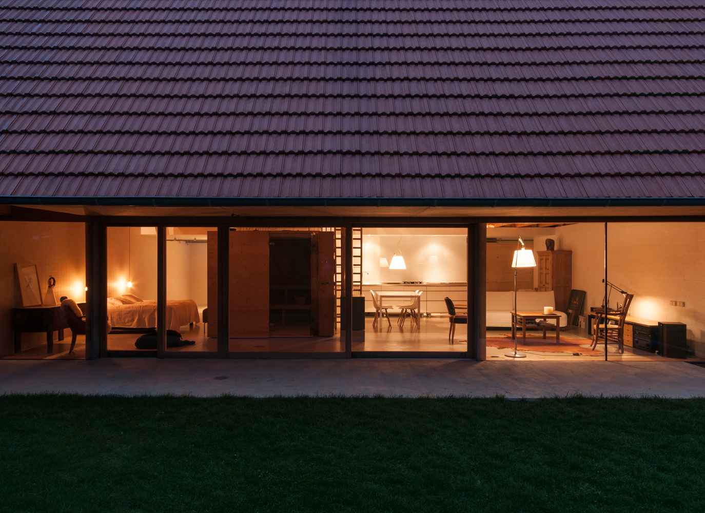 Najbardziej zaskakującym elementem projektu jest „dom w domu” – druga bryła umieszczona na szczycie głównej konstrukcji, ukryta w pozornie chaotycznej, przemysłowej stolarki. Ta nietypowa forma stanowi punkt widokowy, z którego można obserwować zarówno wnętrze pierwszego domu, jak i rozległy alzacki krajobraz. Projekt „Disneyland” to przykład architektury, która w odważny sposób łączy tradycyjny dwuspadowy dach z nowoczesną estetyką i funkcjonalnością, wpisując się w nurt rozwiązań znanych z realizacji typu nowoczesna stodoła.