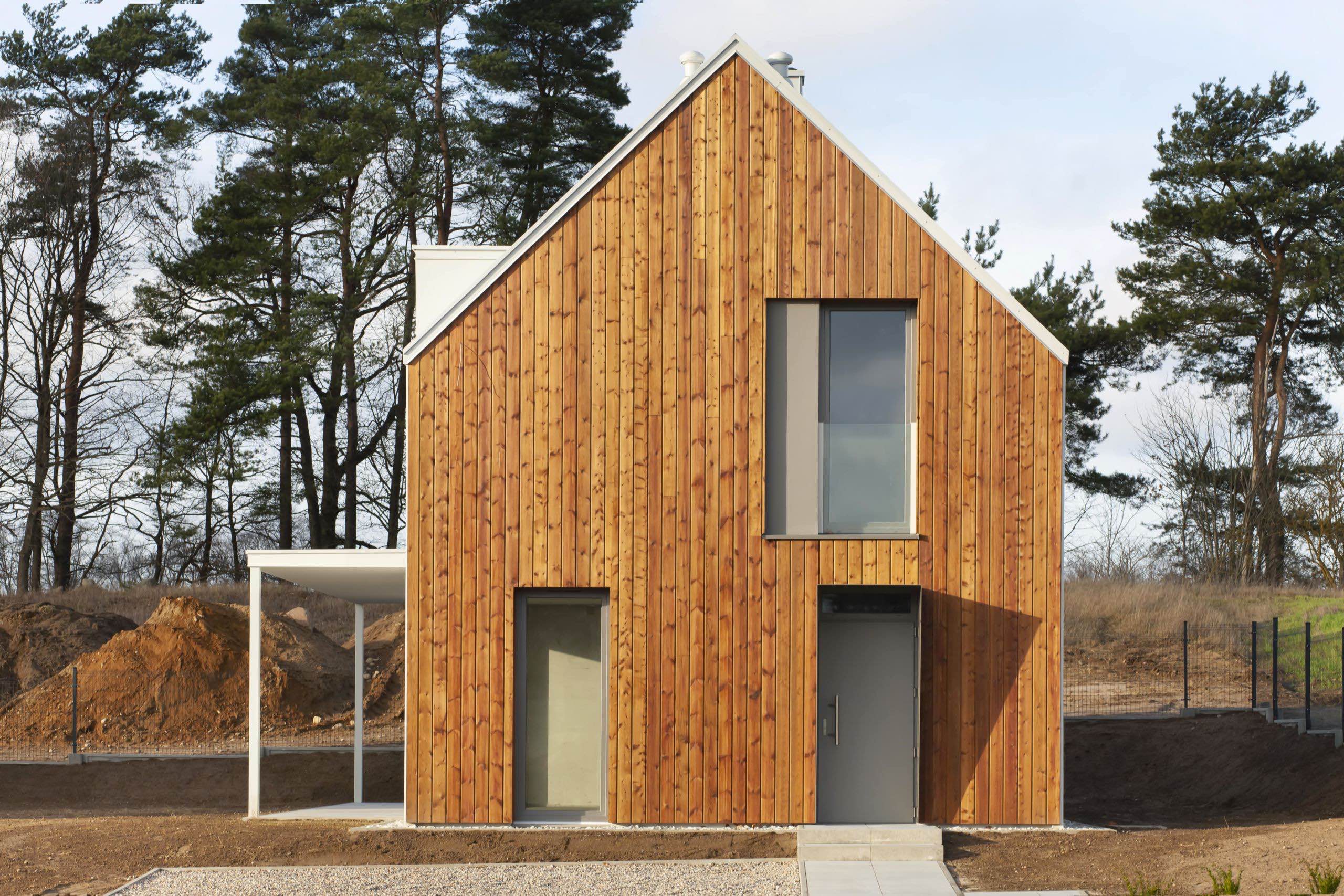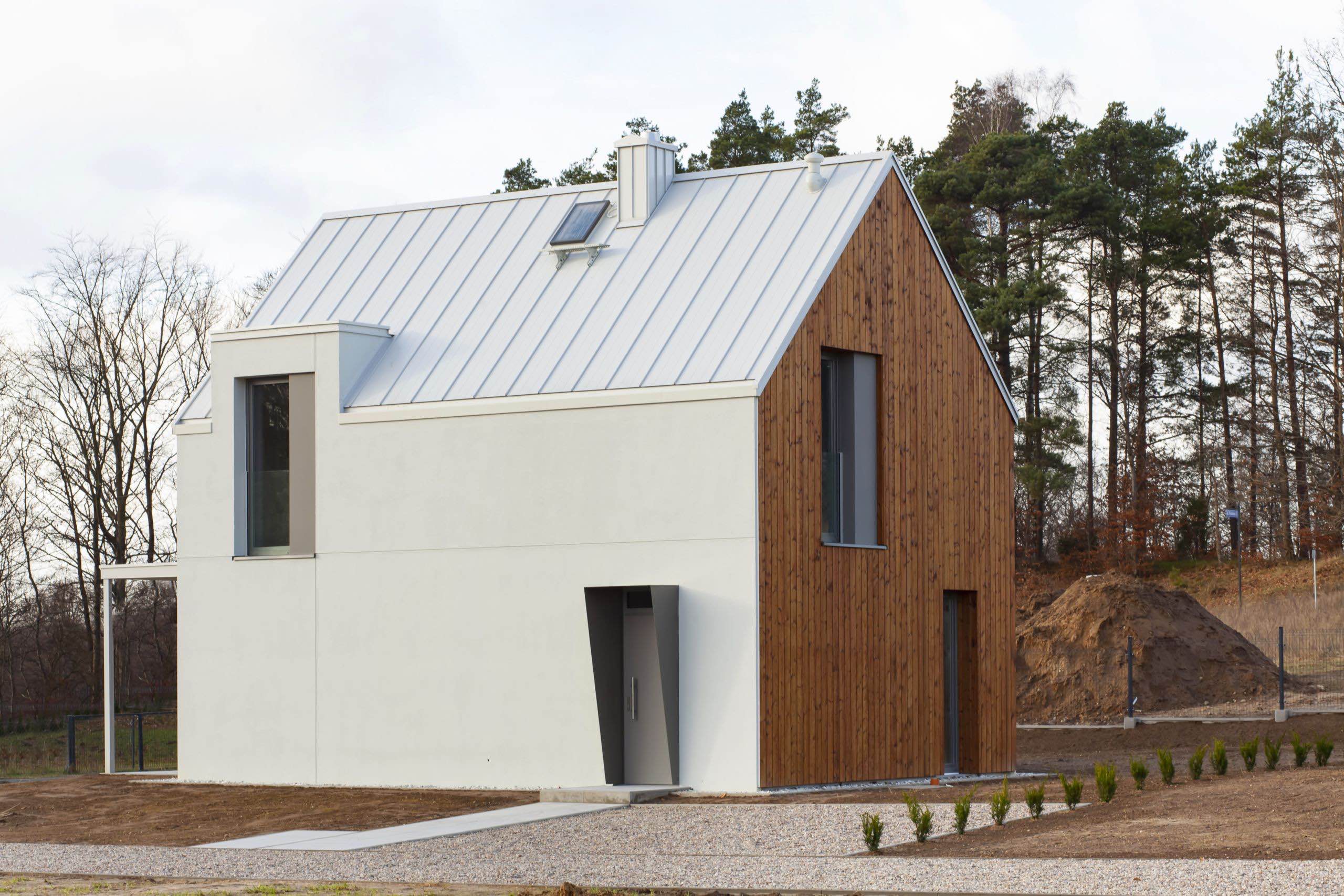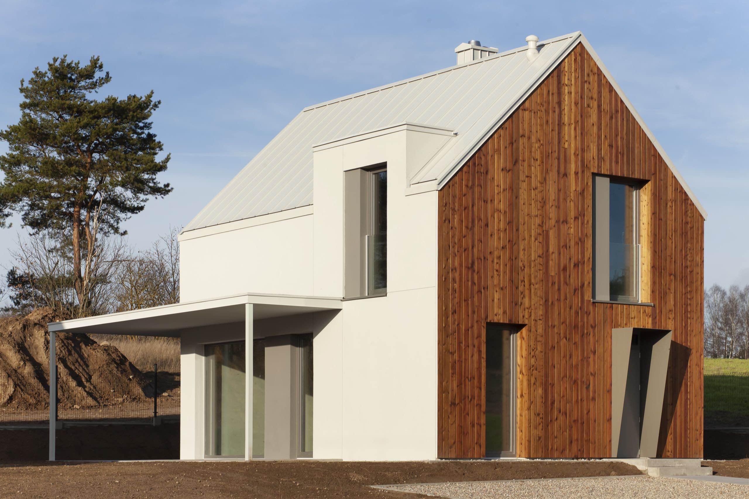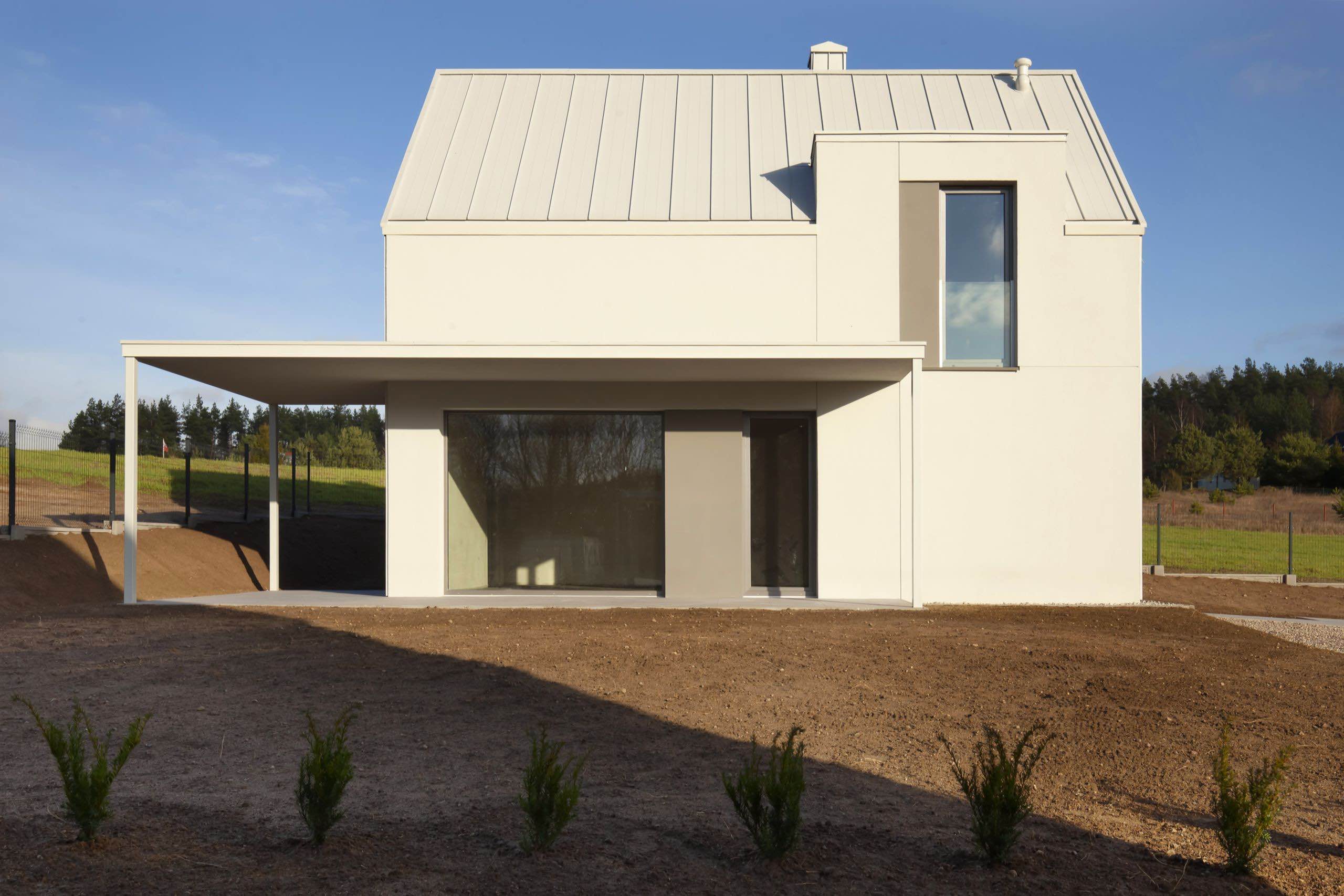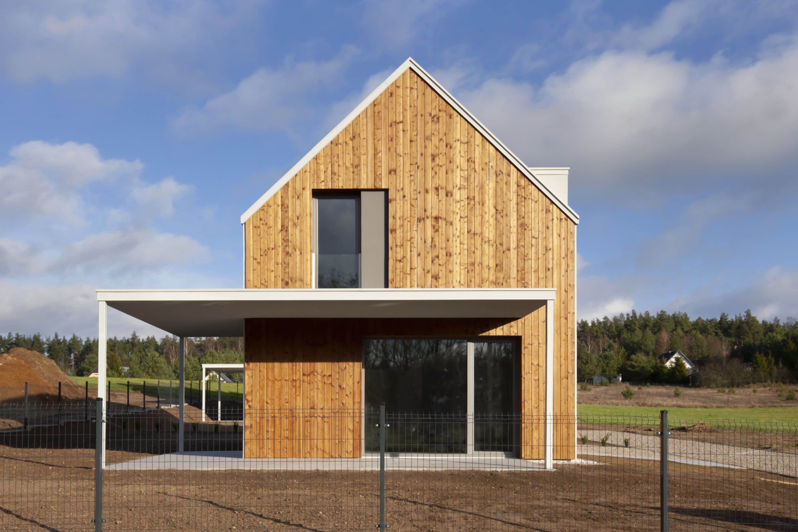 Zespół domów zaprojektowano w niewielkiej skali, co pozwoliło stworzyć przyjemną, półprywatną przestrzeń sprzyjającą relacjom sąsiedzkim. Formy budynków czerpią z archetypu nowoczesnej stodoły, utrzymane są w spójnej, jasnoszarej kolorystyce, a ich szczyty wykończono drewnianymi deskami. Połączenie tych elementów nadaje założeniu niepowtarzalny, współczesny charakter, który harmonijnie wpisuje się w otaczający krajobraz.