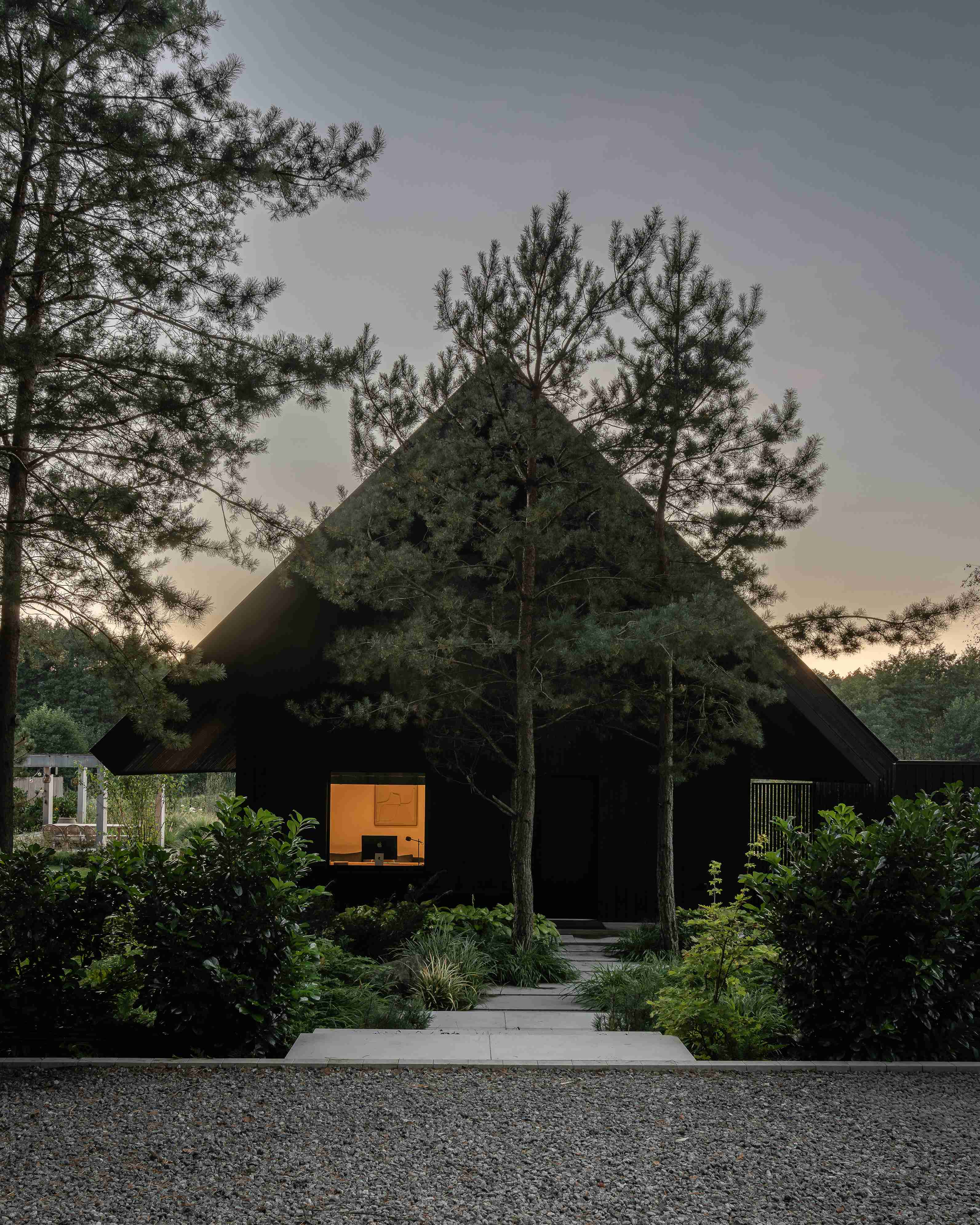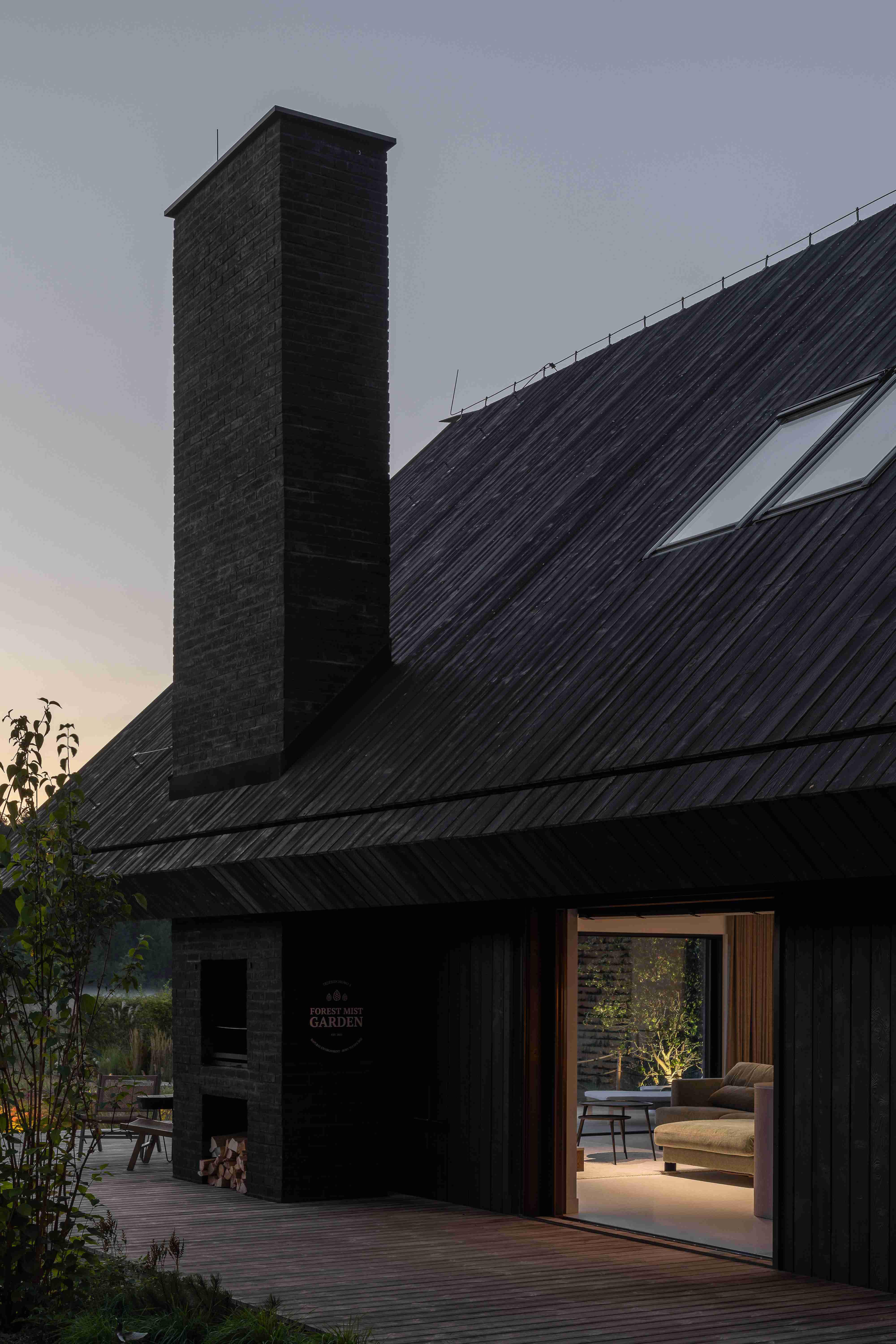 Nowoczesna stodoła w leśnym krajobrazie
