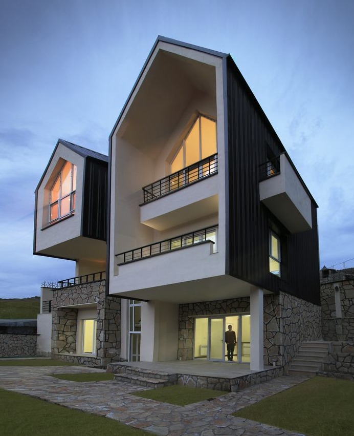 Budynek został zorientowany na osi wschód–zachód, co pozwala maksymalnie wykorzystać dostęp do światła słonecznego przez cały dzień. Architekci zrezygnowali z nadmiaru dekoracji na rzecz klarownej struktury, pionowych ciągów komunikacyjnych i czytelnych, centralnych wejść. Dom umieszczono w północno-zachodniej części działki, skąd rozciągają się najlepsze widoki na otaczający krajobraz. Całość tworzy spójną, funkcjonalną architekturę, która harmonijnie wpisuje się w górskie otoczenie Sangdeh.