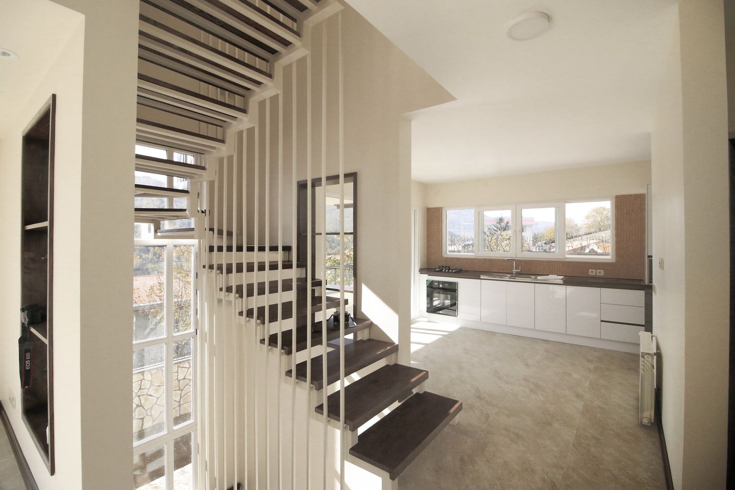Po analizie ukształtowania terenu oraz warunków klimatycznych architekci zaproponowali dom o trzech poziomach i łącznej powierzchni 240 m². Najniższa kondygnacja mieści niezależny apartament oraz strefę rekreacyjną, natomiast na dwóch wyższych poziomach zlokalizowano główną część mieszkalną z trzema sypialniami. Ze względu na ograniczoną powierzchnię działki projekt oparto na zwartym układzie funkcjonalnym, ograniczając do minimum przestrzenie komunikacyjne. Taka kompaktowa forma okazała się korzystna również z punktu widzenia lokalnego klimatu.