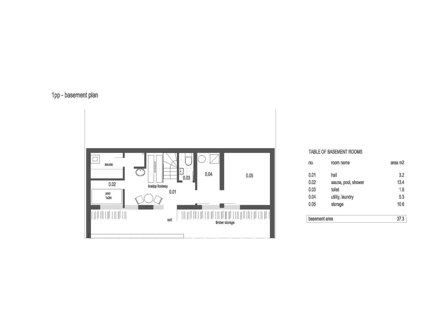 Wejście do domu prowadzi przez zadaszoną część wejściową, która chroni przed niekorzystnymi warunkami atmosferycznymi. Tuż obok znajduje się nieogrzewane miejsce do składowania drewna, a dalej rozciąga się przestronny salon, który można urządzić w zależności od potrzeb. Taras osłonięty od wiatru stanowi doskonałe miejsce na wypoczynek na świeżym powietrzu. W budynku znajdują się także schody, które prowadzą do piwnicy oraz na strych, gdzie znajdują się trzy sypialnie i łazienka.