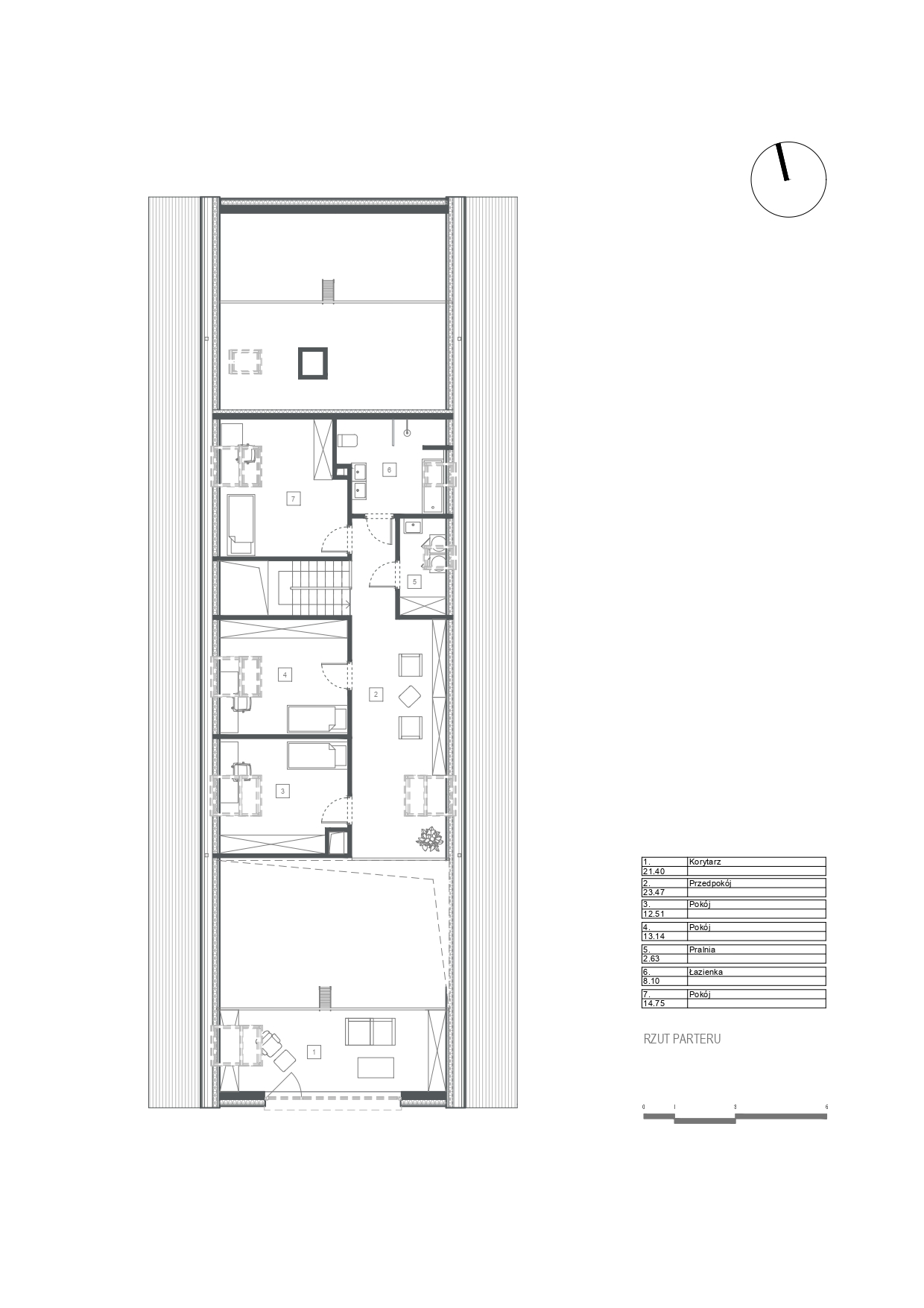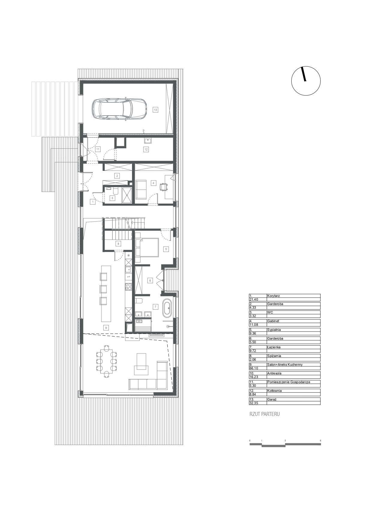 Największym wyzwaniem okazała się wąska działka, co wymusiło na nas wydłużenie bryły i rozplanowanie pomieszczeń w taki sposób, by w pełni wykorzystać przestrzeń i zapewnić domownikom komfort. Udało się to osiągnąć dzięki klarownemu podziałowi na strefy: dzienną w głębi działki, prywatną (sypialnia i gabinet) od strony lasu oraz nocną (dla dzieci) na piętrze. W efekcie powstał dom, który nie tylko odpowiada na praktyczne potrzeby przyszłych mieszkańców, ale także szanuje i podkreśla walory otaczającej przyrody.