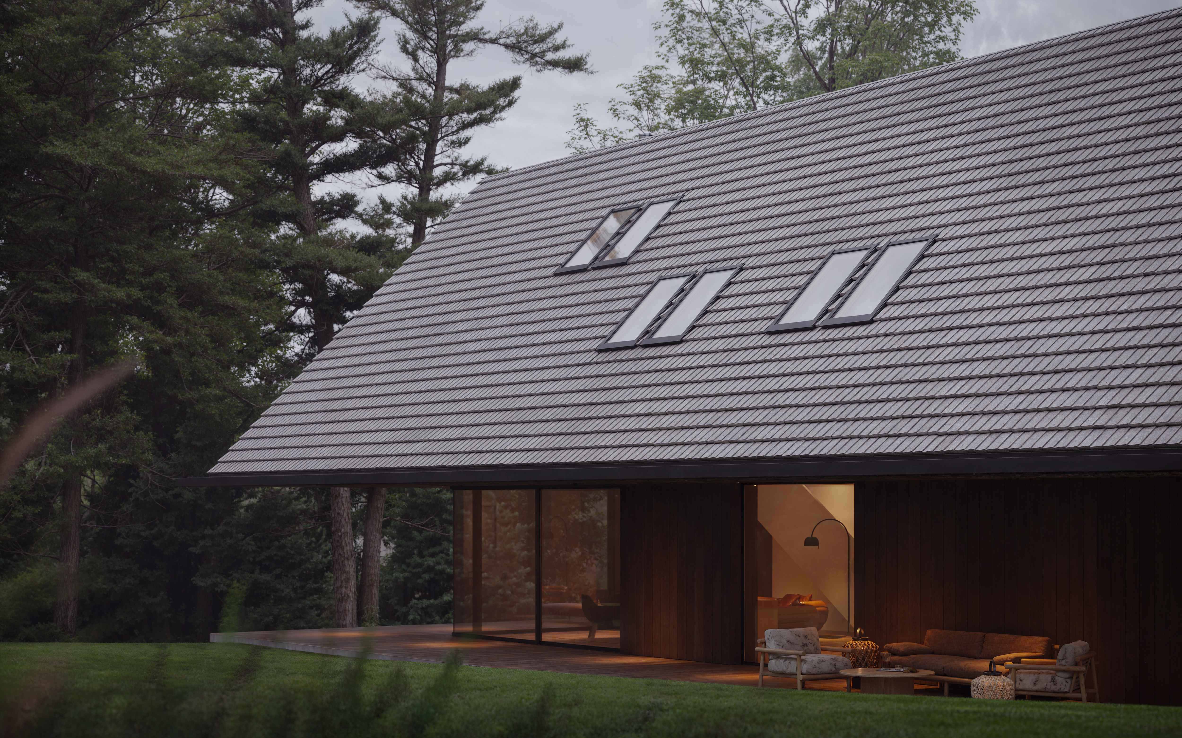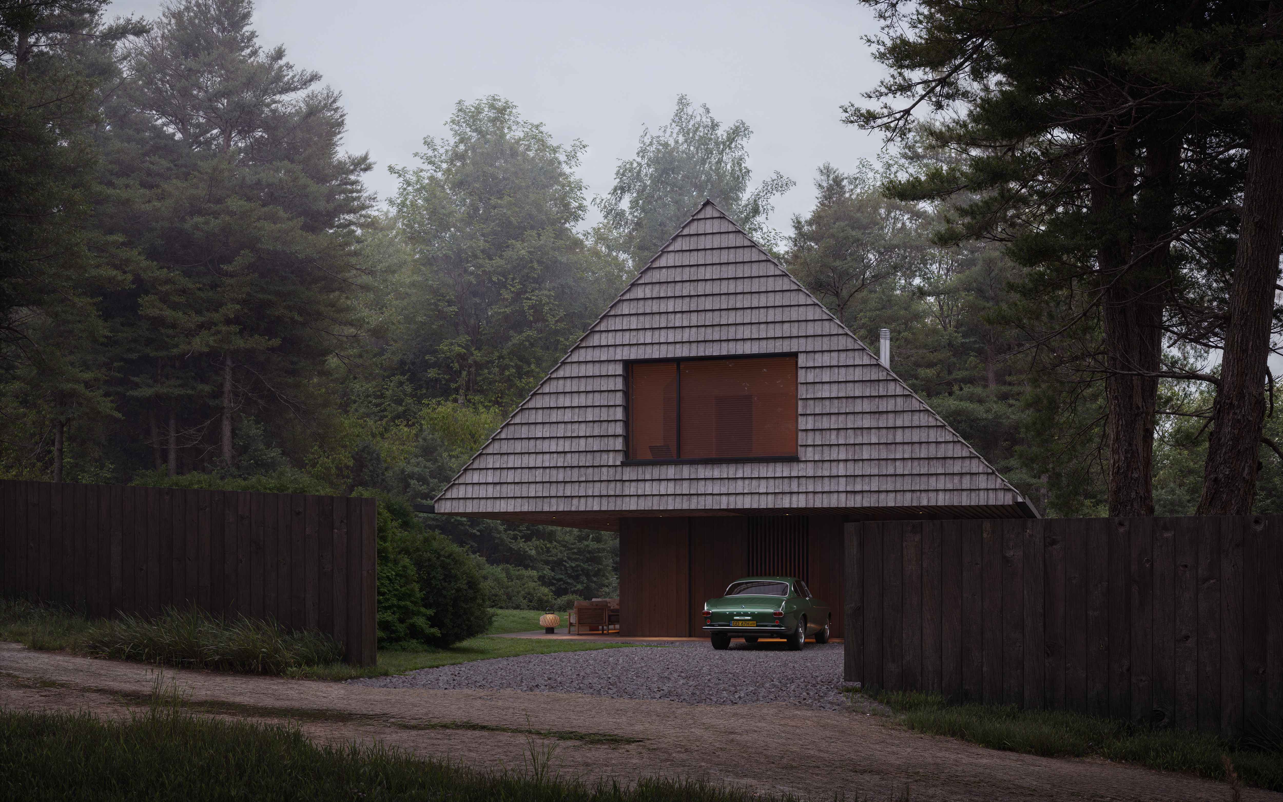 Nowoczesna stodoła w leśnym krajobrazie