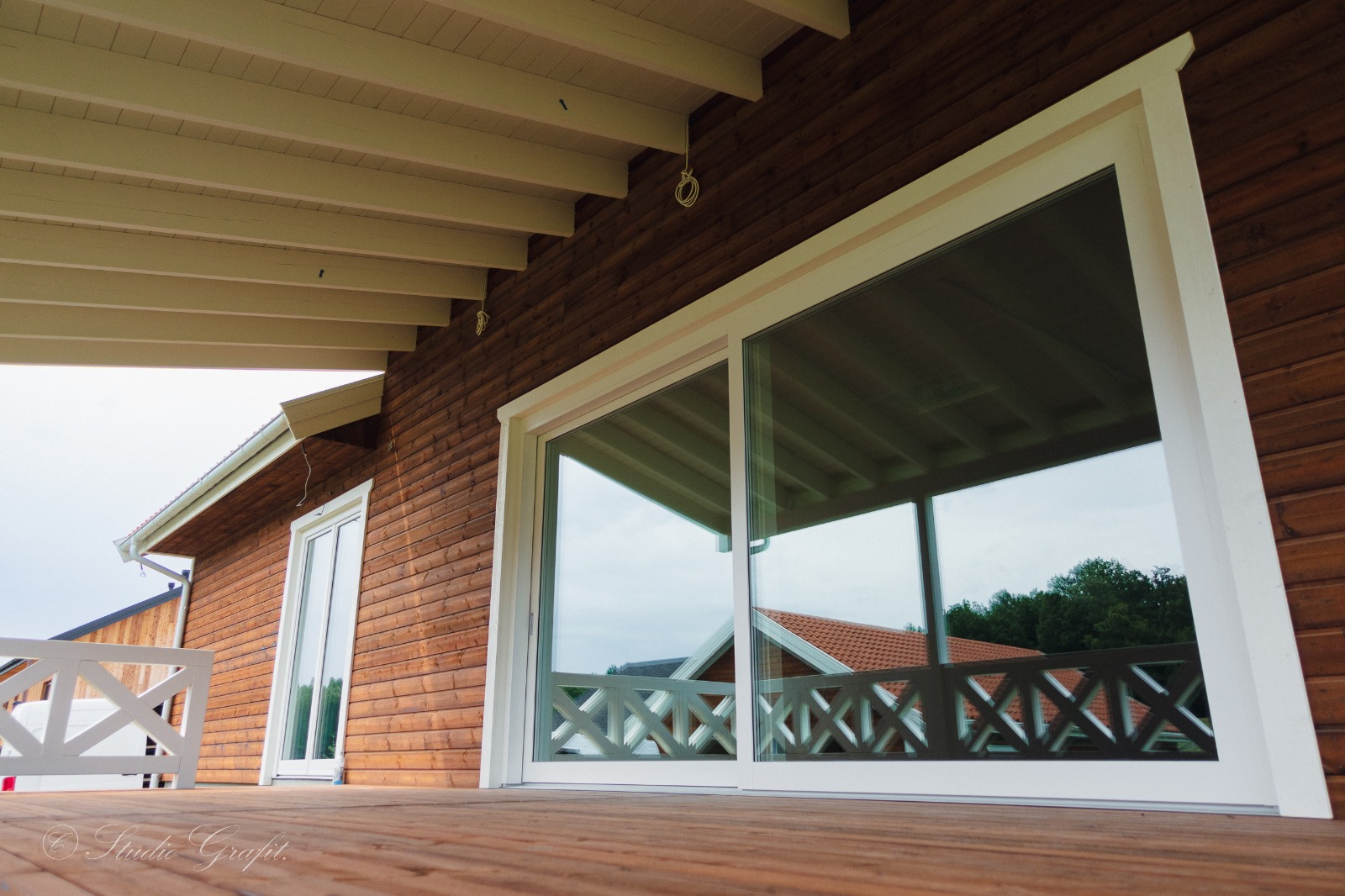 Ten dom to nie tylko estetyka. Wynik testu szczelności (blower-door): 0,13 V/h, zużycie energii do ogrzewania: poniżej 10 kWh/m² rocznie, i to bez fotowoltaiki. W standardzie: drewniane okna z aluminiową nakładką, grzewcza płyta fundamentowa, a całość gotowa w stanie deweloperskim w zaledwie 3 miesiące.