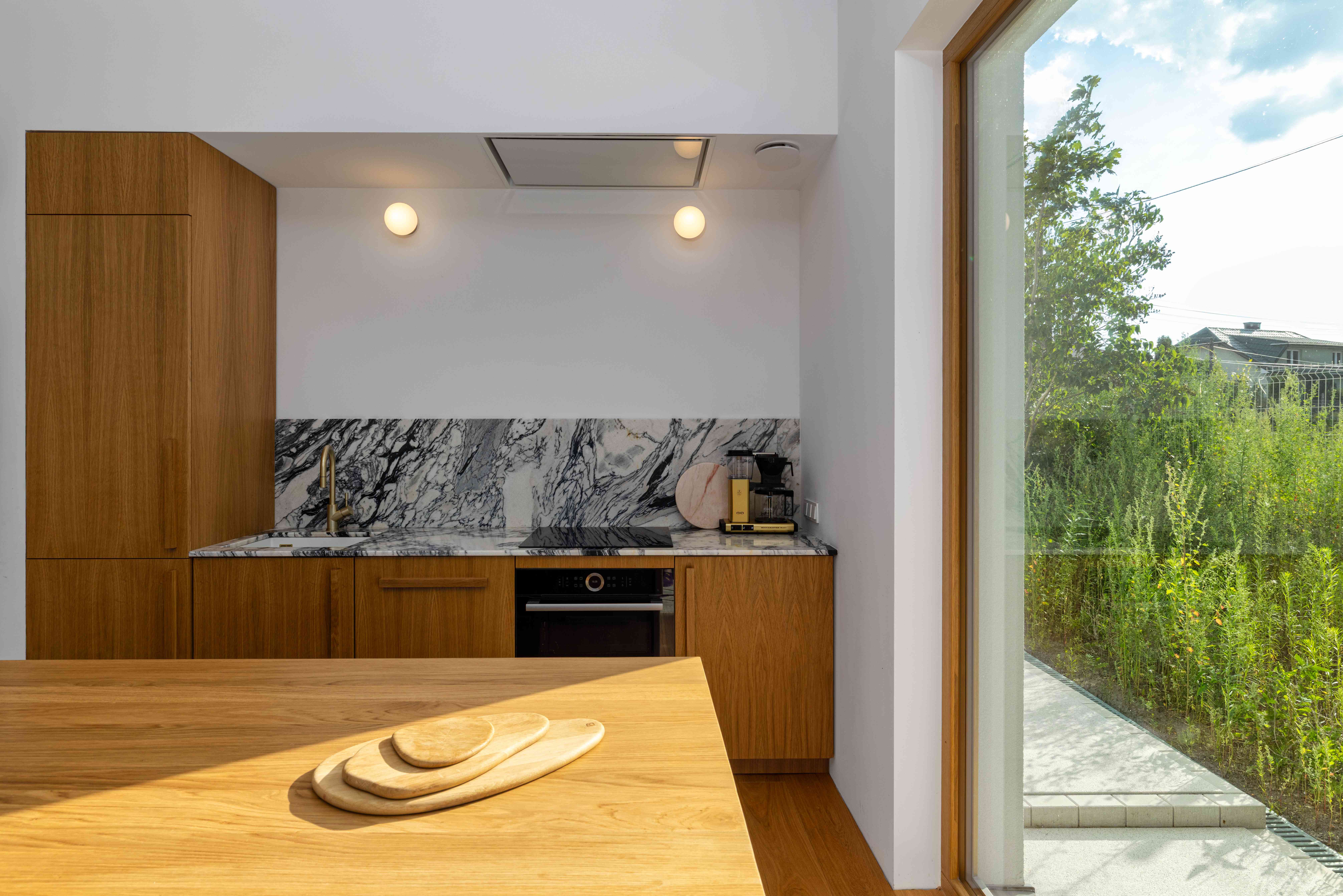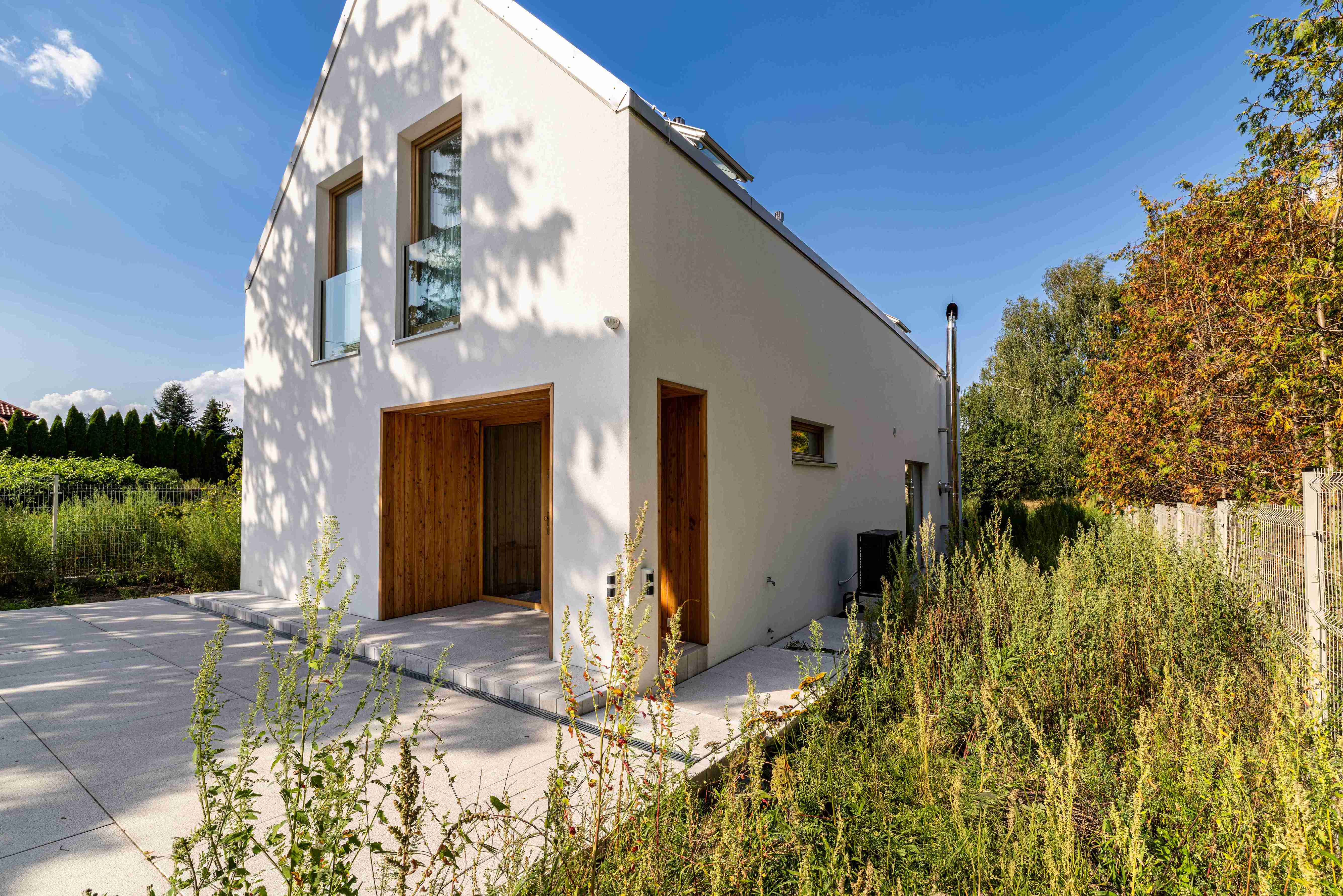 Otulony surowym, naturalnym krajobrazem, ten dom oddycha przestrzenią i światłem. Prosta bryła harmonijnie wpisuje się w otoczenie, a każdy detal został przemyślany z myślą o równowadze między estetyką a funkcją. Surowość materiałów zestawiono z ciepłem drewna i dużymi przeszkleniami, które otwierają wnętrza na zieleń i zmieniające się światło dnia. Tu liczy się prostota, autentyczność i spokój.