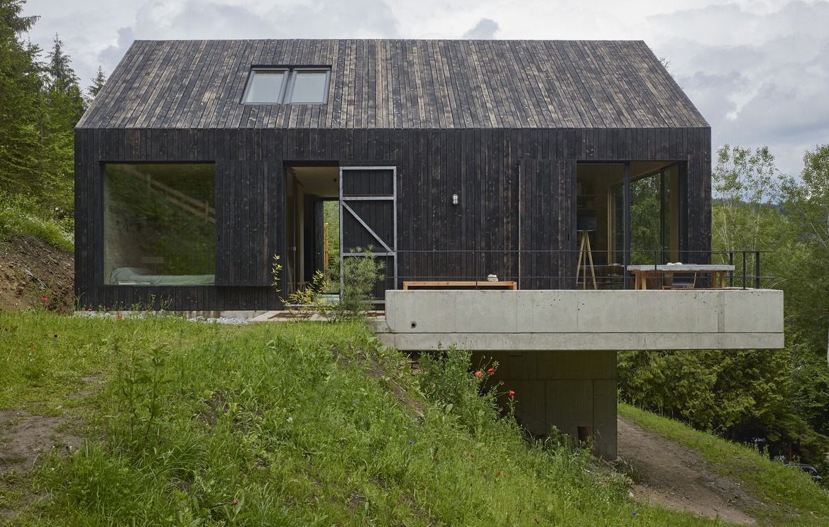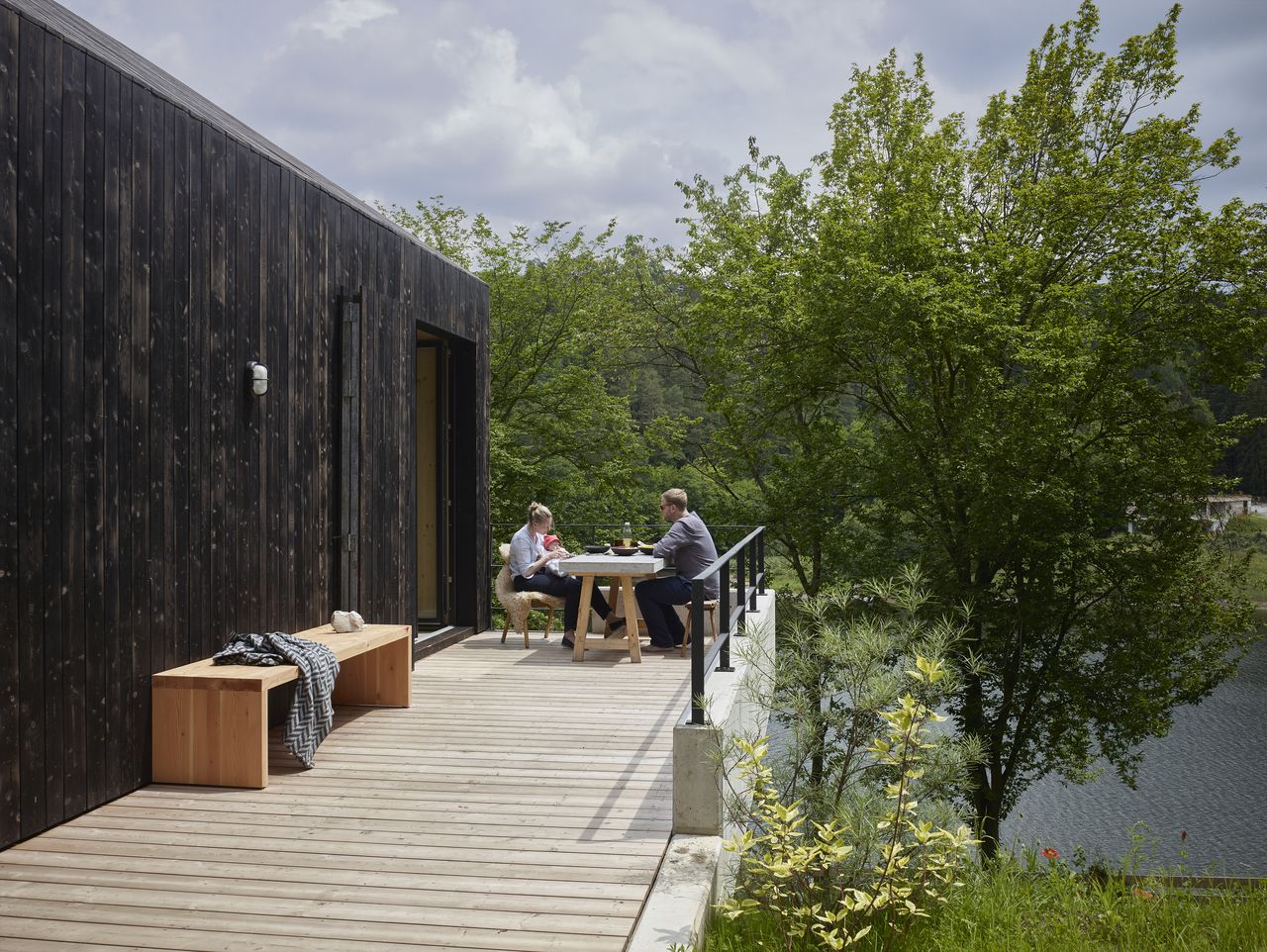Dom letniskowy został zaprojektowany przez architekta Andreasa Etzelstorfera na działce leśnej w pobliżu jeziora Thurnberger, niecałą godzinę od Wiednia. Głównym założeniem było jak najmniej inwazyjne podejście do otoczenia, z uwzględnieniem ekologii na każdym etapie budowy. Głównym materiałem wykorzystanym do konstrukcji i wykończenia wnętrz jest drewno, a budynek wzorowany jest na typowych dla regionu stodołach i stajniach, niemal całkowicie obłożonych czarnym drewnem modrzewiowym. Kolor i faktura drewna uzyskane zostały dzięki tradycyjnej technice zwęglenia, która chroni drewno przed warunkami atmosferycznymi, ogniem i szkodnikami, jednocześnie zwiększając jego żywotność nawet do 100 lat.