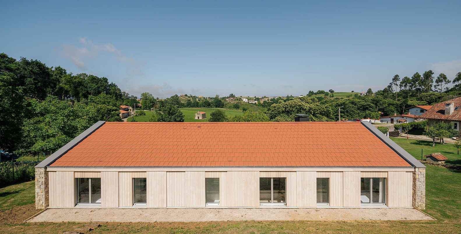 W malowniczych wiejskich krajobrazach Kantabrii powstał projekt Dom Llana – nowoczesna stodoła mocno osadzona w tradycji lokalnej architektury. Budynek wzniesiono między dwoma kamiennymi szczytami, a jego dwuspadowy dach utrzymano w rdzawym kolorze charakterystycznym dla regionu. Sercem domu jest Solana, zadaszony taras skierowany na południową stronę, który pozwala mieszkańcom cieszyć się aktywnością na świeżym powietrzu, zarówno sportową, jak i rekreacyjną, w harmonii z otaczającym krajobrazem.