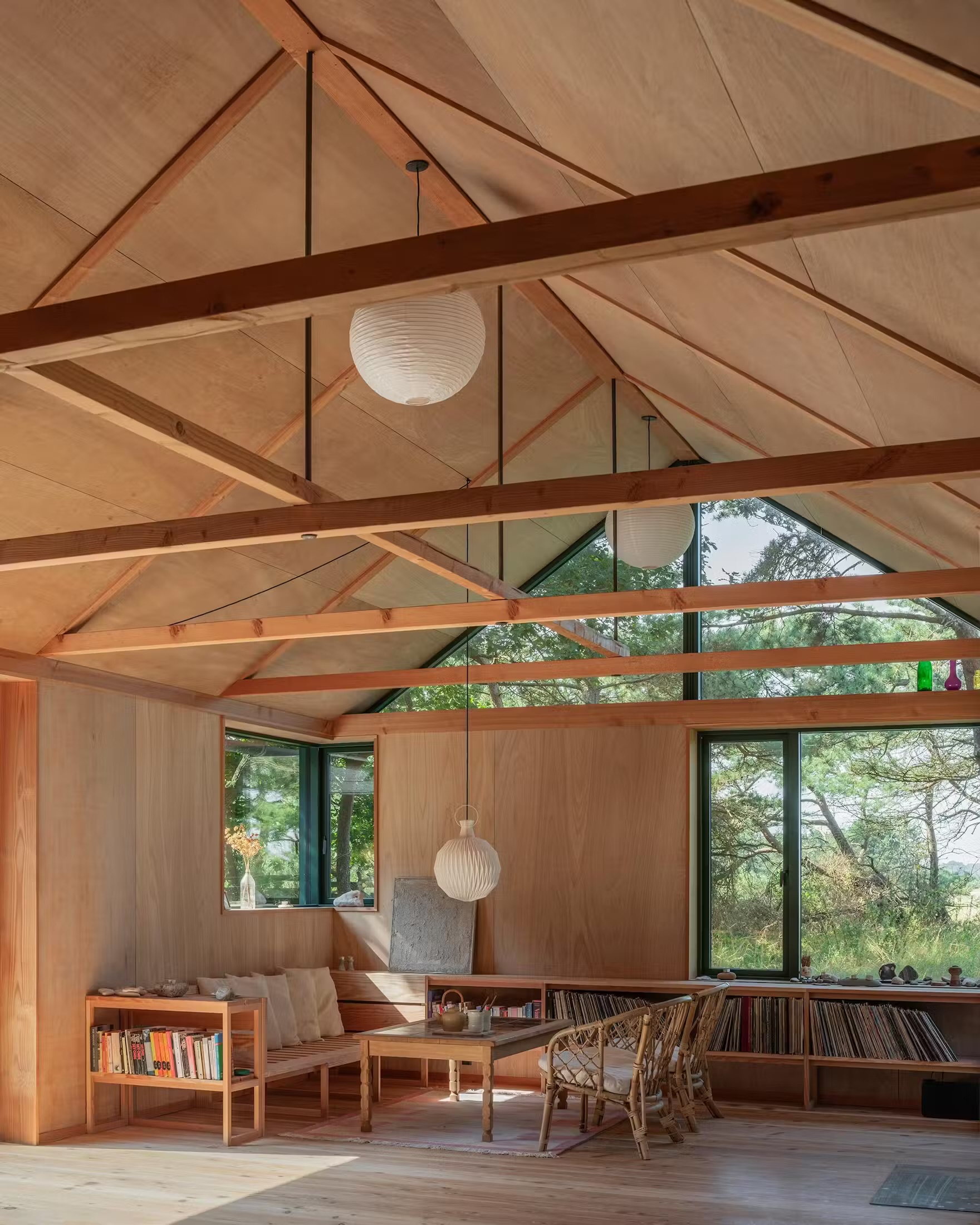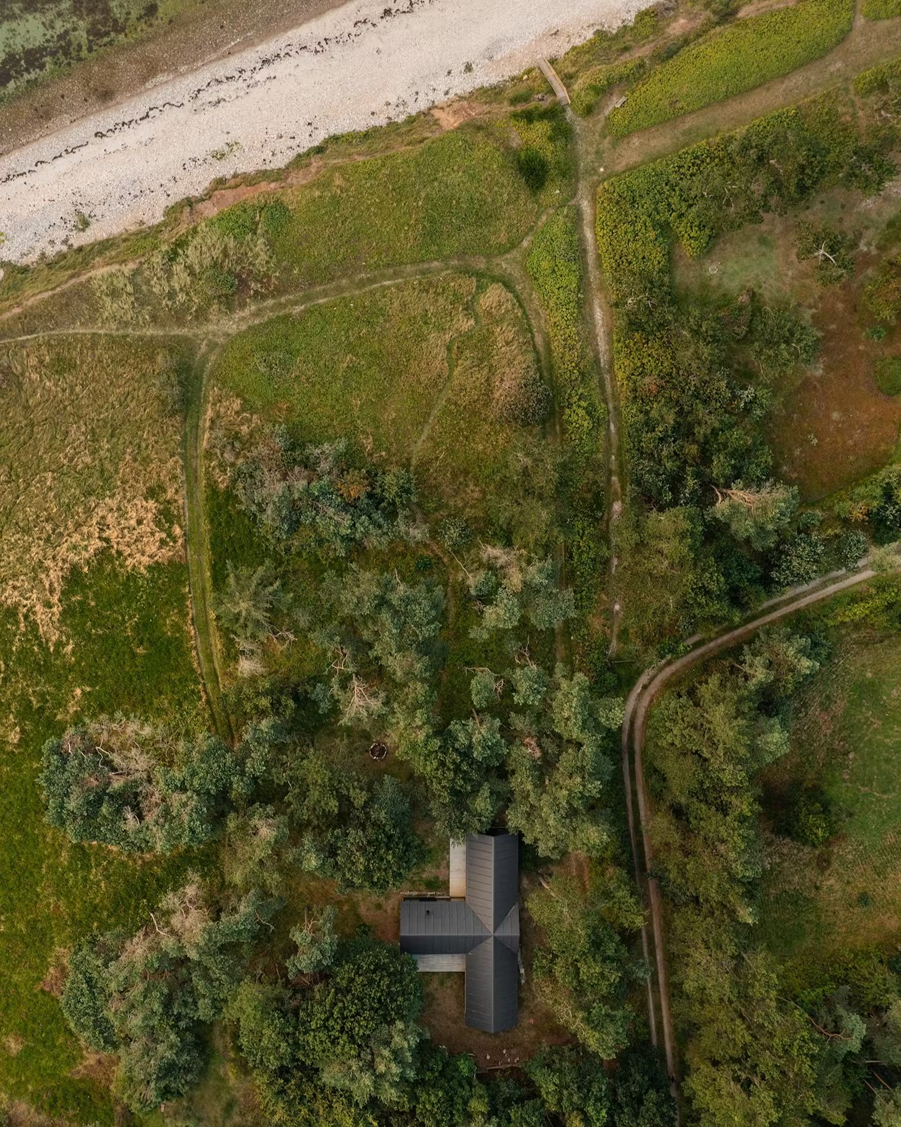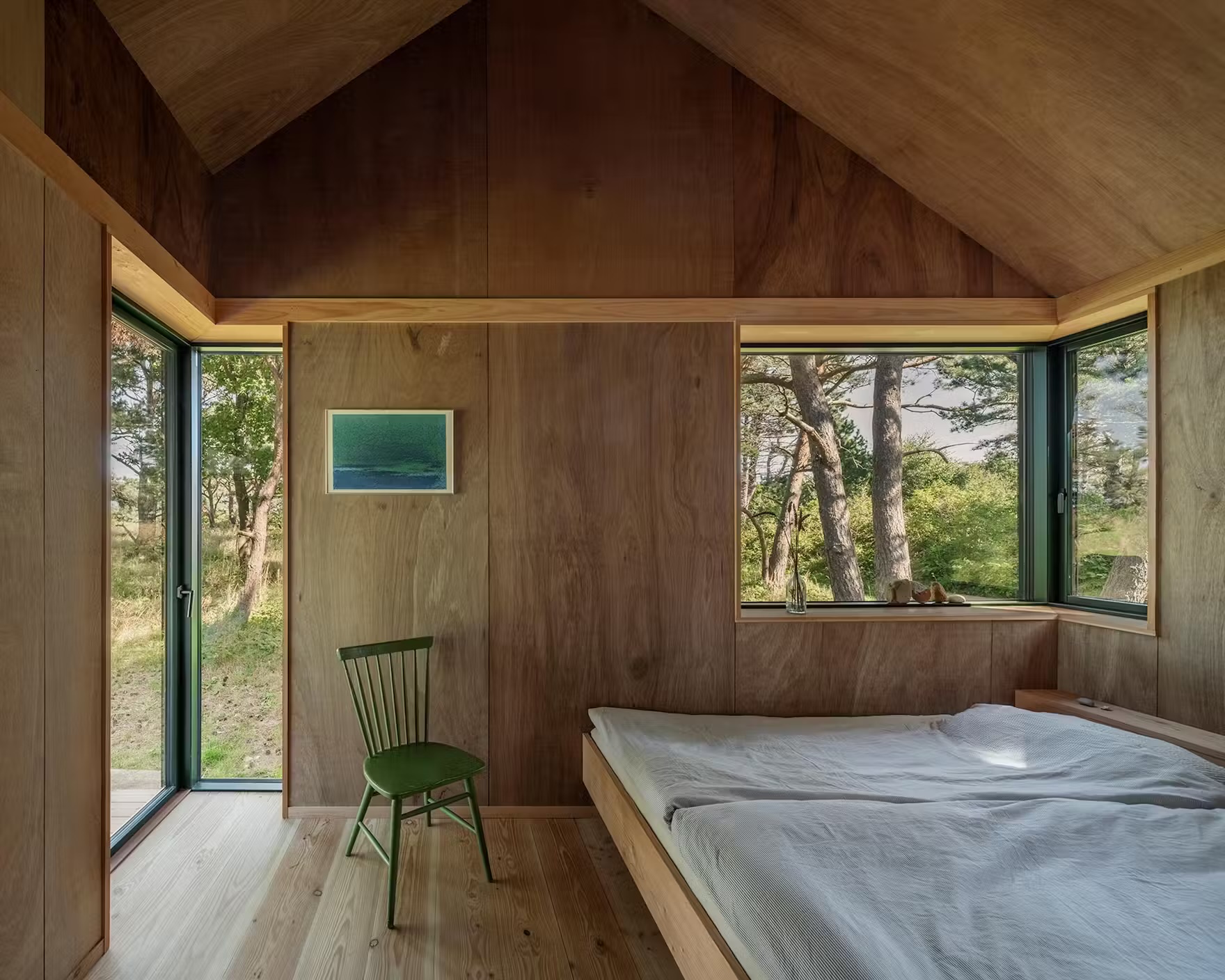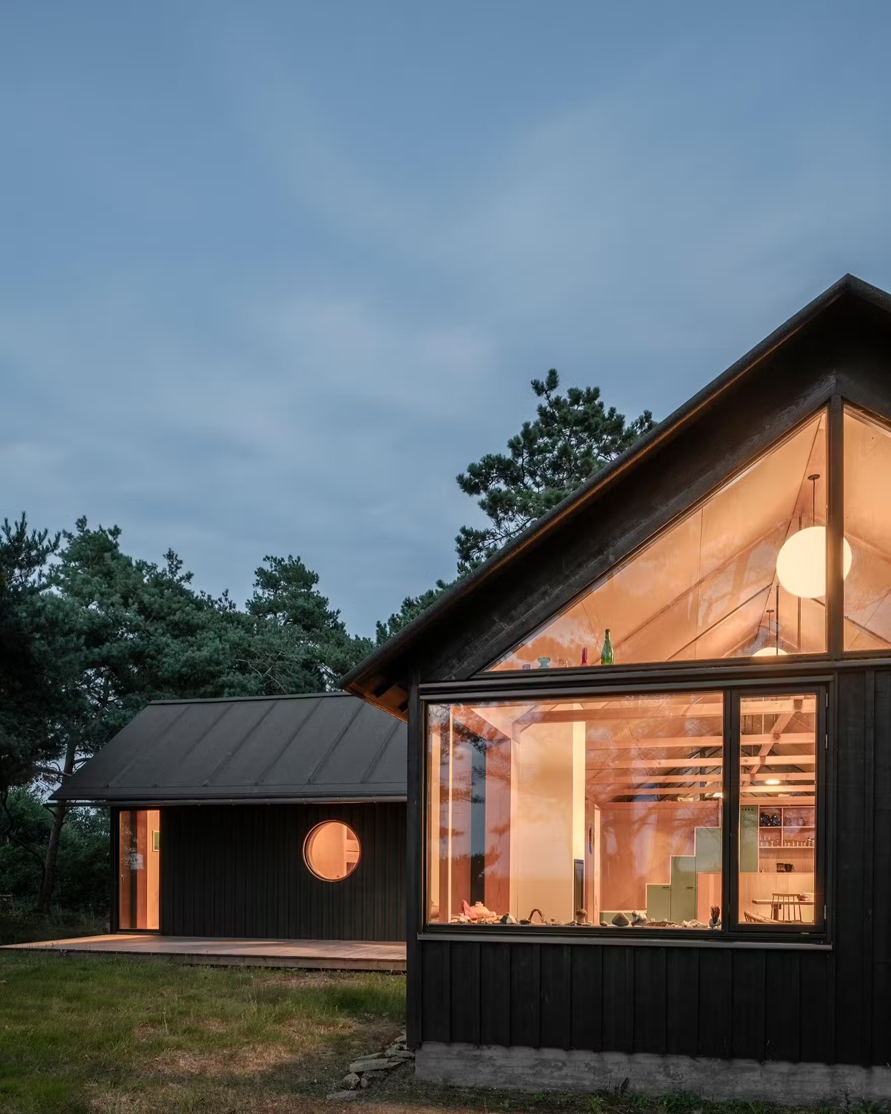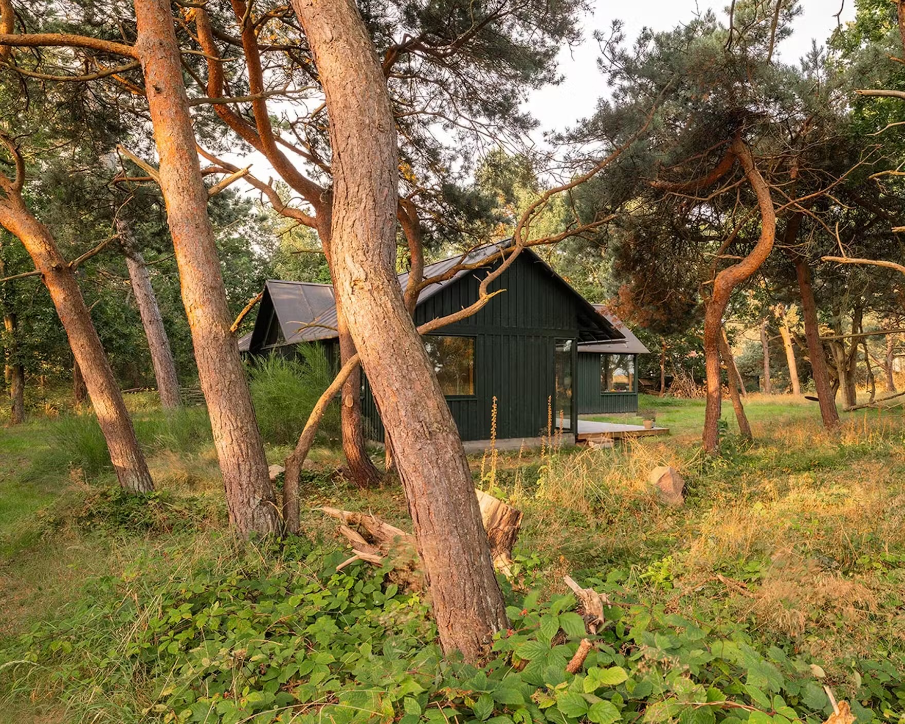 Dom między drzewami to mistrzowskie połączenie skandynawskiej prostoty, ekologii i szacunku dla miejsca – fundamenty ograniczają beton, materiały są naturalne, a układ funkcjonalny skupia się na dostępności światła i integracji z otoczeniem. Peter Kjær Arkitekter zaprojektowali przestrzeń, która oddycha razem z lasem – utrzymująca lekkość i harmonię z naturą.