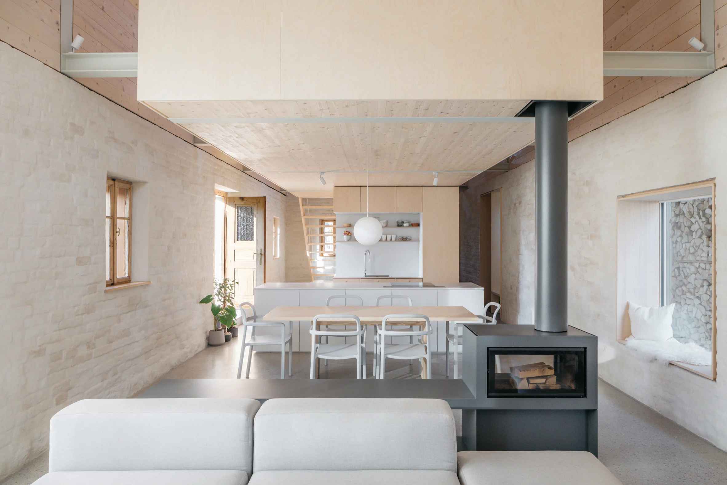 W projekcie Domu MM architekci postawili na prostotę materiałów, łącząc bielone cegły, drewno i stal w harmonijną całość. Tynk strukturalny podkreśla charakter istniejących murów, a polerowana betonowa posadzka, wykonana przy udziale właścicieli, dodaje wnętrzom surowego uroku. Co ważne, inwestorzy byli aktywnie zaangażowani w proces rewitalizacji – nie tylko projektowo, ale też fizycznie. Ich wkład podkreśla, że prawdziwe życie domu zaczyna się tam, gdzie kończy się architektura. Dom MM to nie tylko udana fuzja starego i nowego, ale też modelowy przykład tego, jak nowoczesna stodoła może być ekologiczną i emocjonalnie silną alternatywą dla budowy od zera.