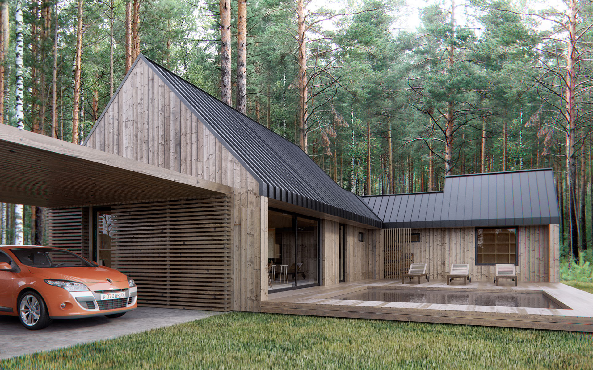 Nowoczesna stodoła z modułów PLUSMODUL może być rozbudowywana w przyszłości, co pozwala na dodawanie kolejnych segmentów do istniejącego budynku. Jedna z elewacji pełni funkcję bariery wizualnej i akustycznej, chroniąc prywatność mieszkańców, podczas gdy przeciwległa strona otwiera dom na ogród i otoczenie.