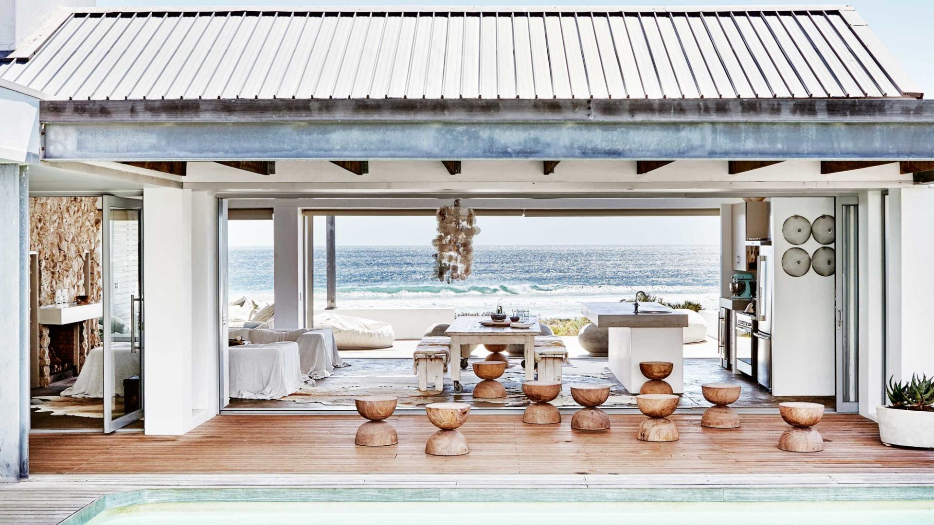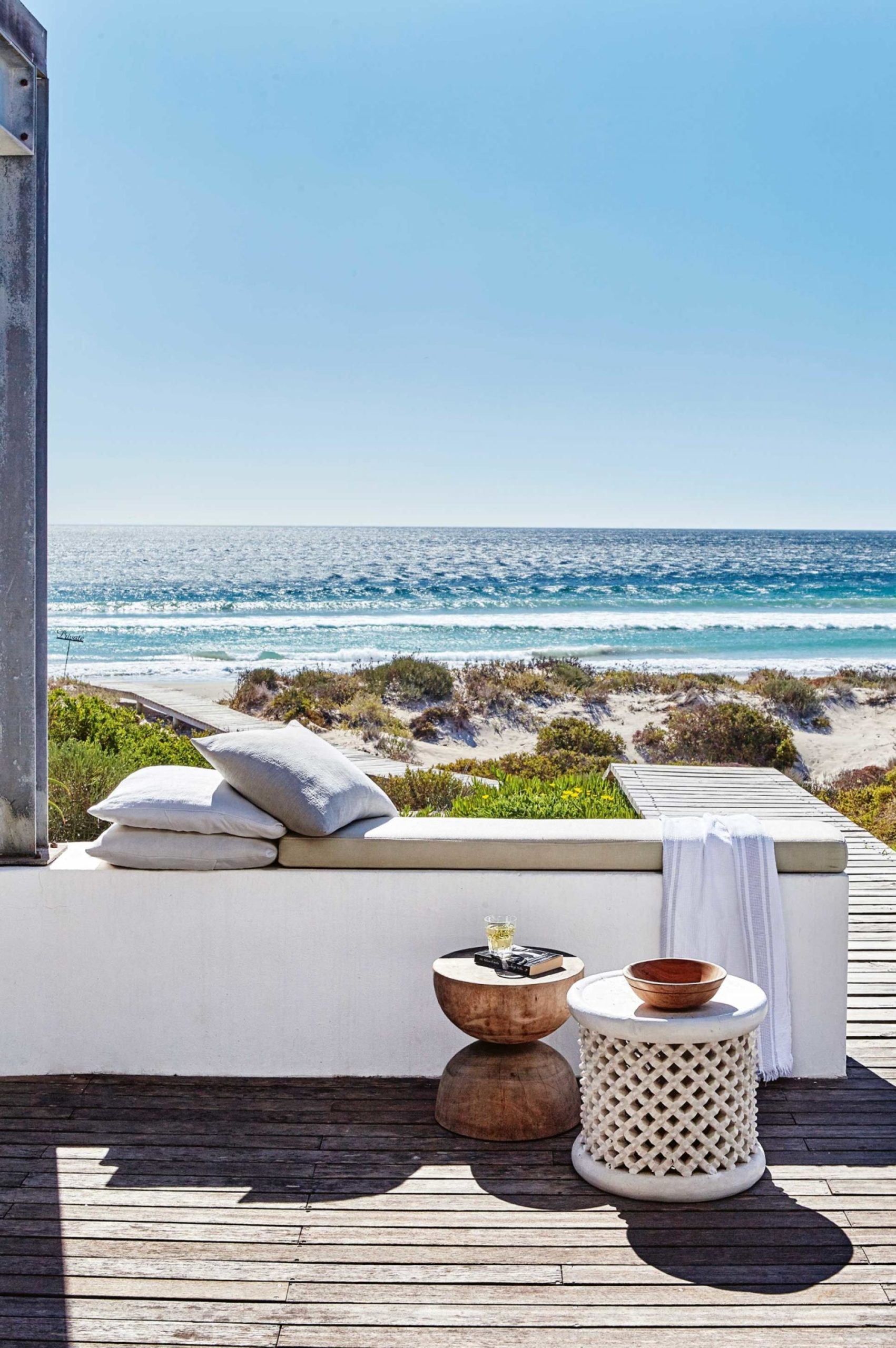 Dzika linia wybrzeża Republiki Południowej Afryki to idealna lokalizacja dla sprytnie zaprojektowanego domu na plaży, którego najważniejszą funkcją jest czysty relaks. W domu tym mieszka Caroline Maritz, która kiedyś zajmowała się trendami w modzie, a obecnie jest nauczycielem jogi, oraz jej mąż Manie wraz z dziećmi. Trzeba przyznać, że niewiele jest na świecie takich miejsc z widokiem, które dają nam gwarancję na codzienne obserwacje delfinów i wielorybów. Takie szczęście ma właśnie rodzina Maritz, która może przeżywać takie doświadczenia spędzając czas we własnym domu. Tutejsze głębokie i lodowate wody w pobliżu miasteczka Britannia Bay są idealnym miejscem zabawy dla tych pełnych uroku ssaków. I to właśnie takie widoki stały się priorytetem dla pary z Cape Town, która postanowiła w tym miejscu zbudować swój wakacyjny dom.