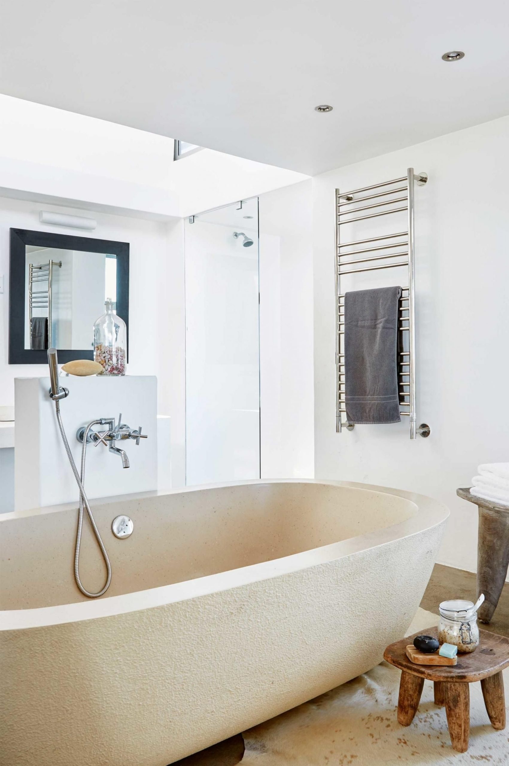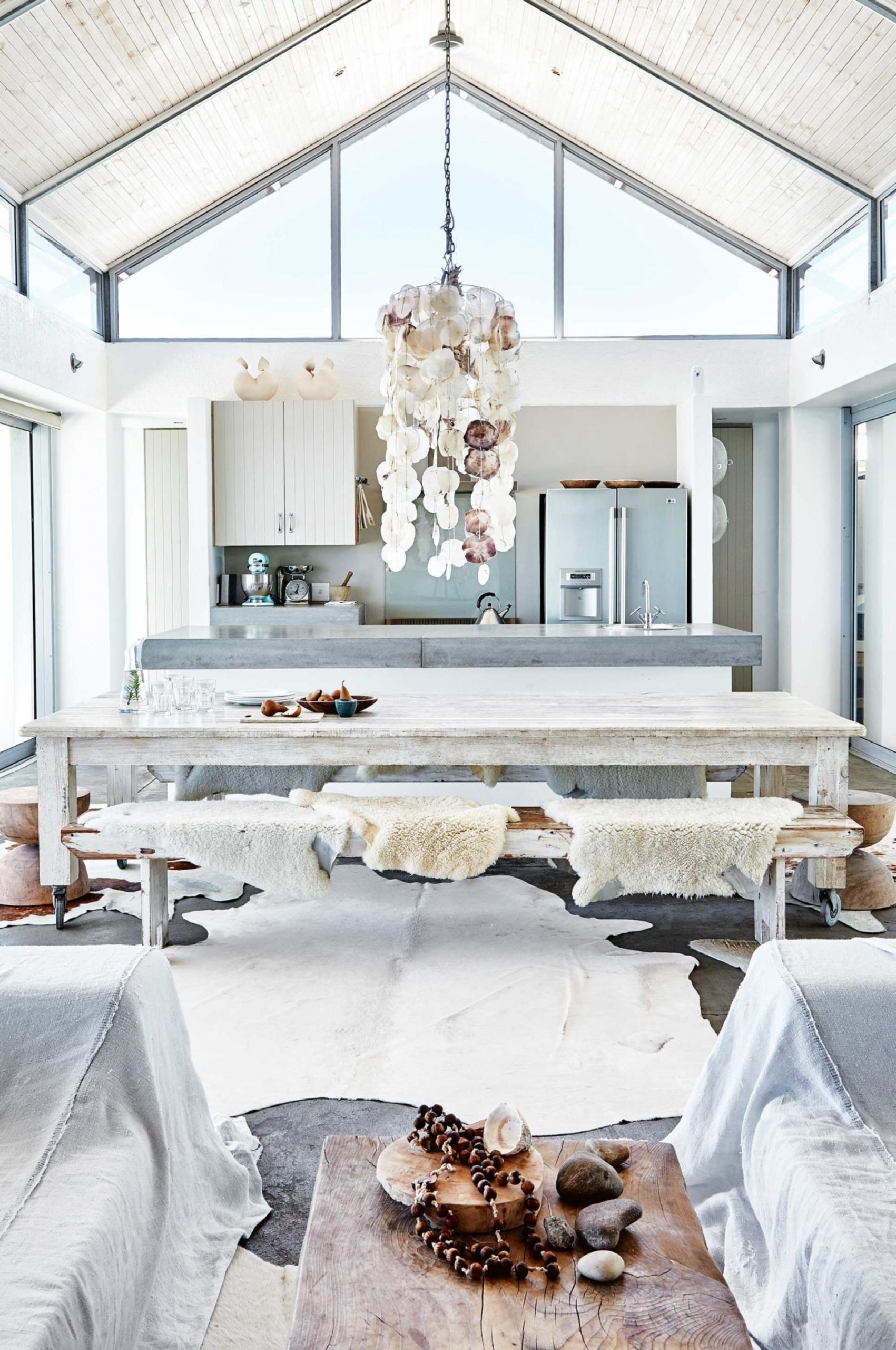 „Chciałam być w stanie patrzeć na ocean z każdego miejsca w domu” – wspomina Caroline, która wraz z mężem odkryła tę działkę 10 lat temu i natychmiast wyrysowała szkic domu, który miał tam stanąć w przyszłości. „Chciałam mieć dom w kształcie litery U z osłoniętym podwórzem i basenem w środku” – dodaje właścicielka. „Zachodnie wybrzeże słynie z silnego wiatru, więc było to świetne rozwiązanie, a przy okazji podobał mi się pomysł domu zwróconego w stronę basenu, co pozwala mi obserwować wszystko z kuchni, w której najłatwiej jest mnie znaleźć.”