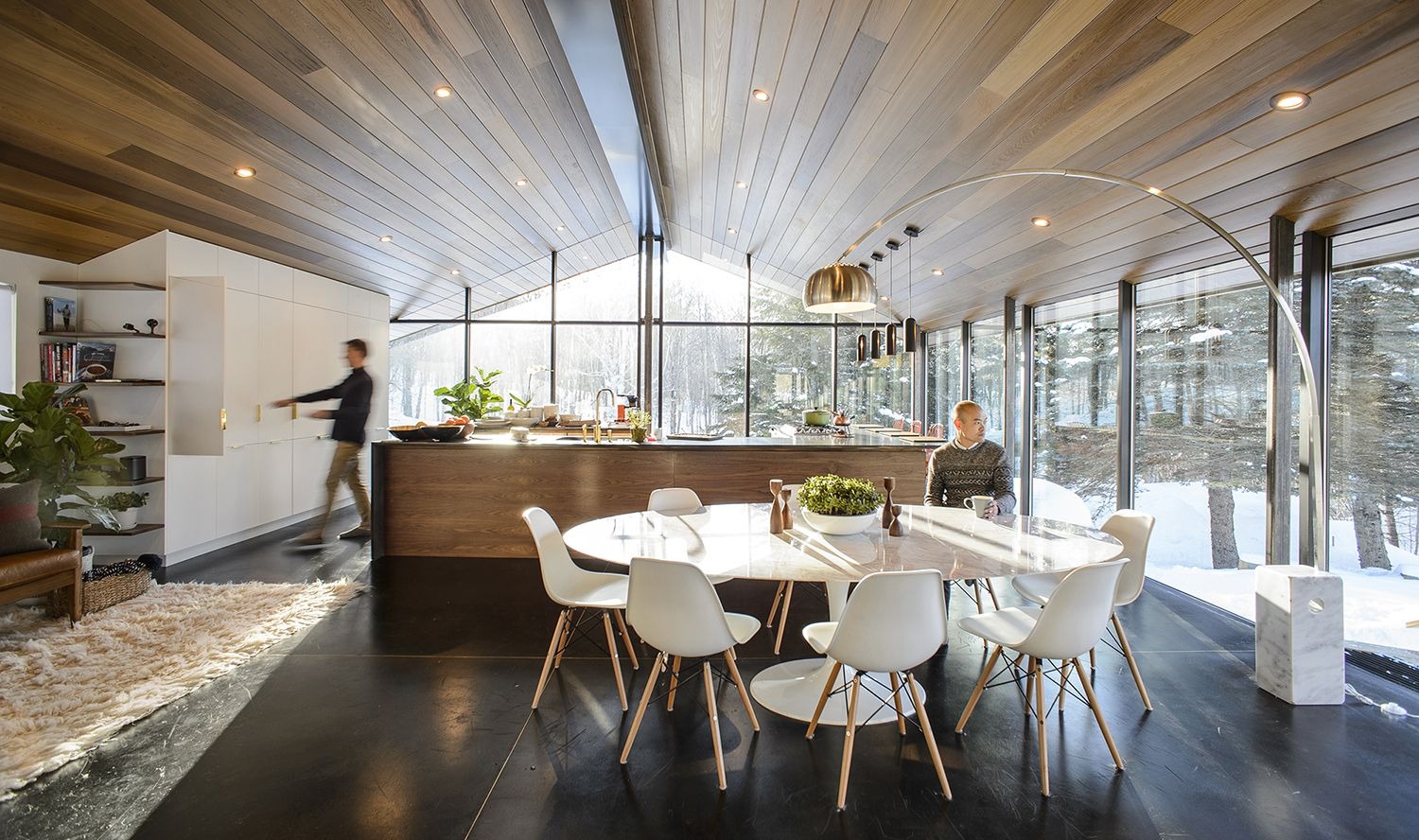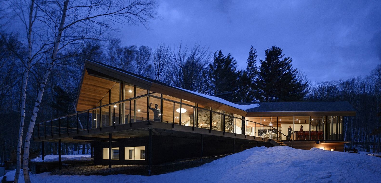 Architektura domu została zaprojektowana z myślą o funkcjonalności i dostępności. Trójkątny rdzeń organizuje wnętrze tak, aby maksymalnie wykorzystać spektakularne widoki i otwartą przestrzeń. Dzięki inspiracji metodą Jamesa Turella, architekci zredukowali wizualne granice między wnętrzem a zewnętrzem, eliminując progi i parapety. Dom oferuje niesamowitą integrację z naturą, a jednocześnie pozostaje w pełni dostępny dla osób starszych i z ograniczoną mobilnością.