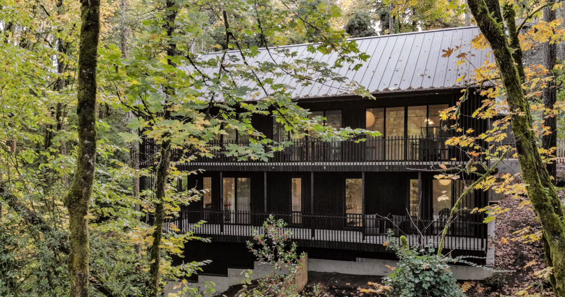 Dom powstał na zalesionym zboczu w dzielnicy West Hills w Portland, z widokiem na Marquam Nature Park. To teren wymagający, nigdy wcześniej niezabudowany, przecięty strumieniem i objęty ścisłymi regulacjami środowiskowymi. Ochrona istniejącej roślinności, zachowanie naturalnych siedlisk zwierząt oraz rozbudowane plany gospodarki wodami opadowymi sprawiły, że projektowanie i realizacja domu stały się procesem długim i złożonym. Jednocześnie to właśnie ten kontekst nadał architekturze wyjątkowy charakter i głęboką relację z naturą.