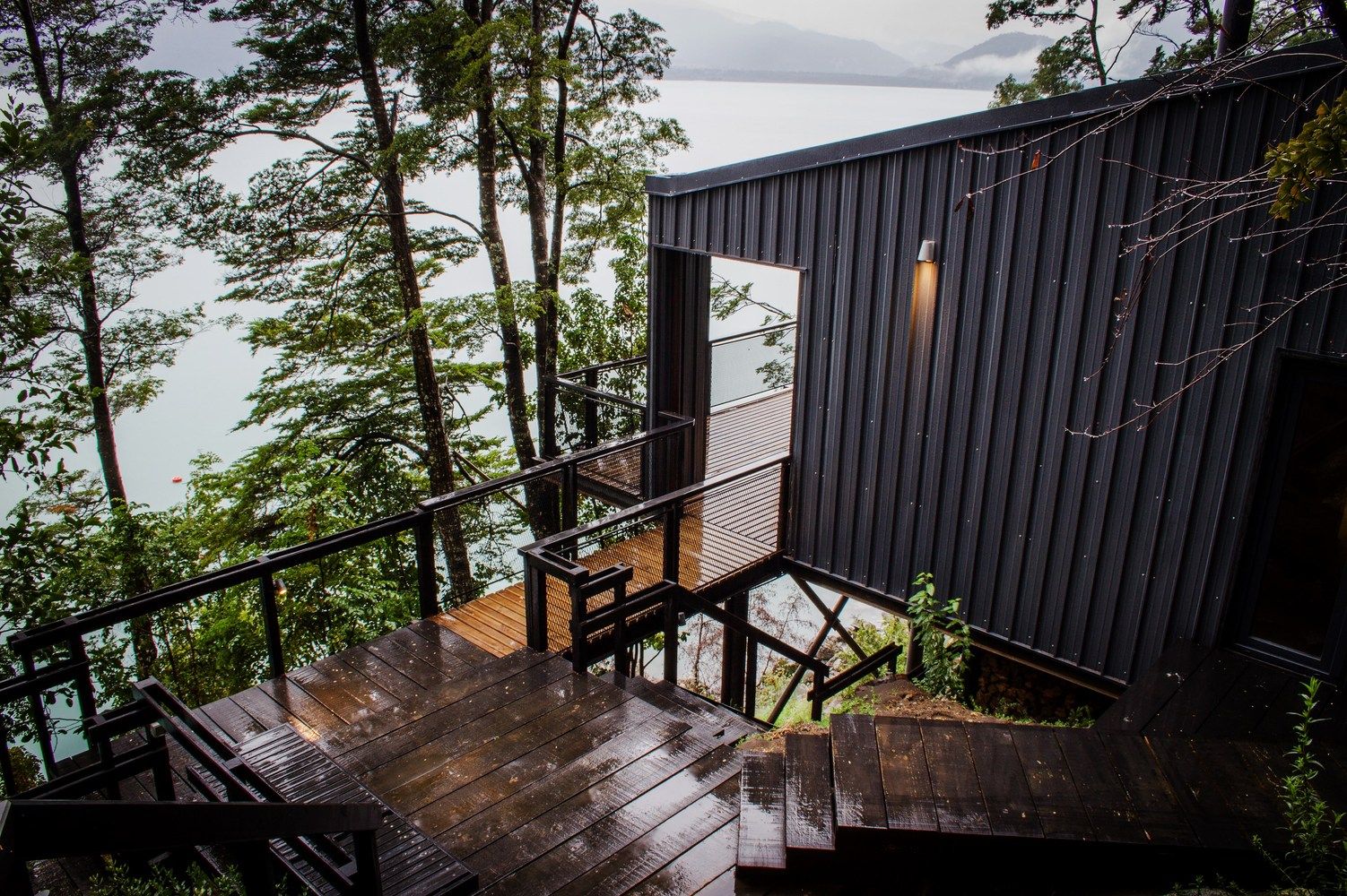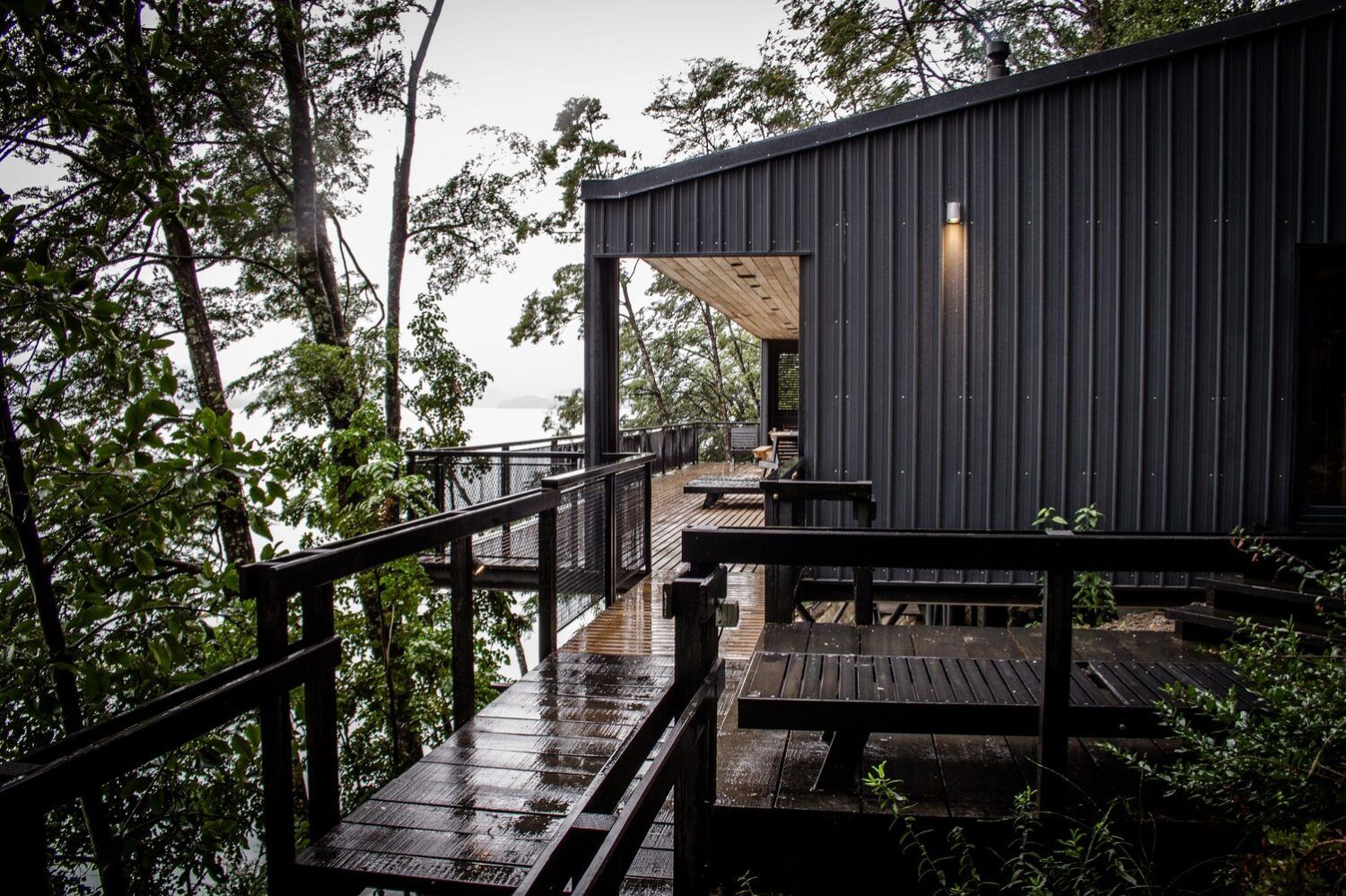 Ten jednorodzinny dom weekendowy stoi na południowym wybrzeżu jeziora Todos Los Santos w południowym Chile, w otoczeniu lasów i kilku wulkanów. Dostać się można do niego jedynie łodzią. Teren jest dość niezwykły i ekstremalny. Budynek stoi bowiem na wysokim, skalistym zboczu, które pokryte jest grubą, półtorametrową warstwą próchniczej gleby. Budowa w takim miejscu wymagała od architektów sporej wyobraźni i zastosowania specjalnej strategii dotyczącej nie tylko wyboru materiałów, ale też samego systemu konstrukcji. Chodziło o to, by projekt umożliwiał transport wodny materiałów, a także manualną instalację wszystkich elementów. Na miejscu nie można było bowiem wykorzystać żadnego sprzętu ciężkiego.