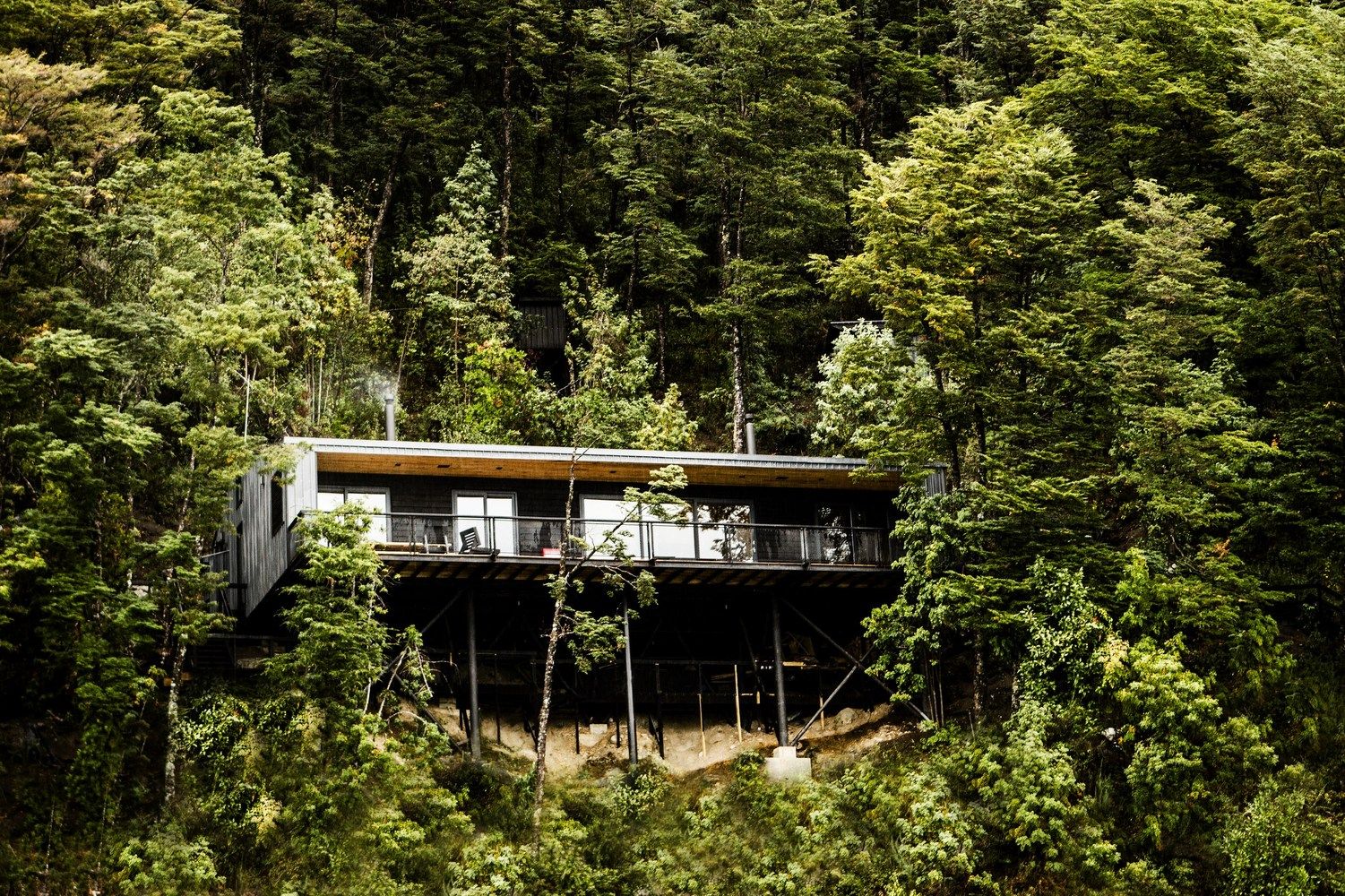 Przy tych wszystkich założeniach wstępnych, architekci i właściciele nie chcieli zbytnio ingerować w otoczenie, szanując otaczającą budynek przyrodę. Zdecydowali się więc na system podpór i stalowych belek, co pozwoliło im unieść budynek nad ziemią i zminimalizować jego punkty kontaktowe z podłożem.