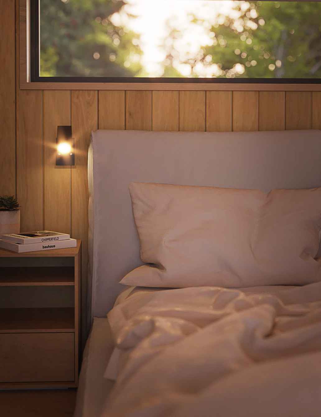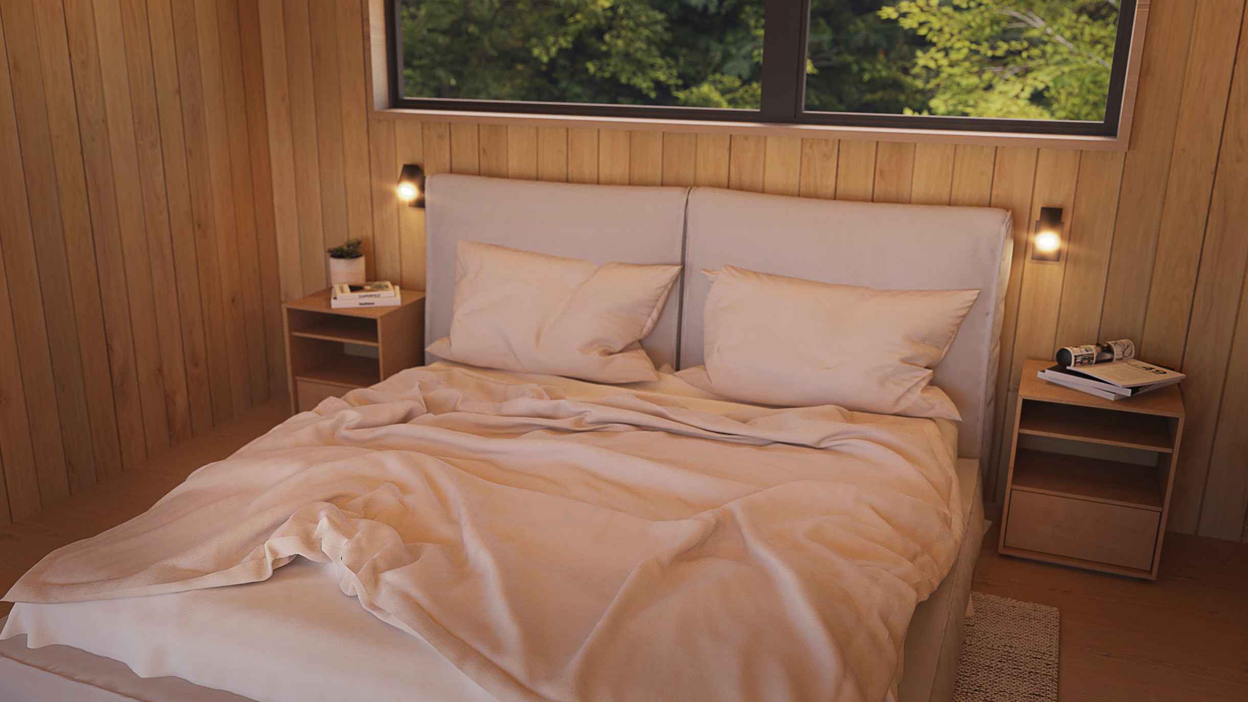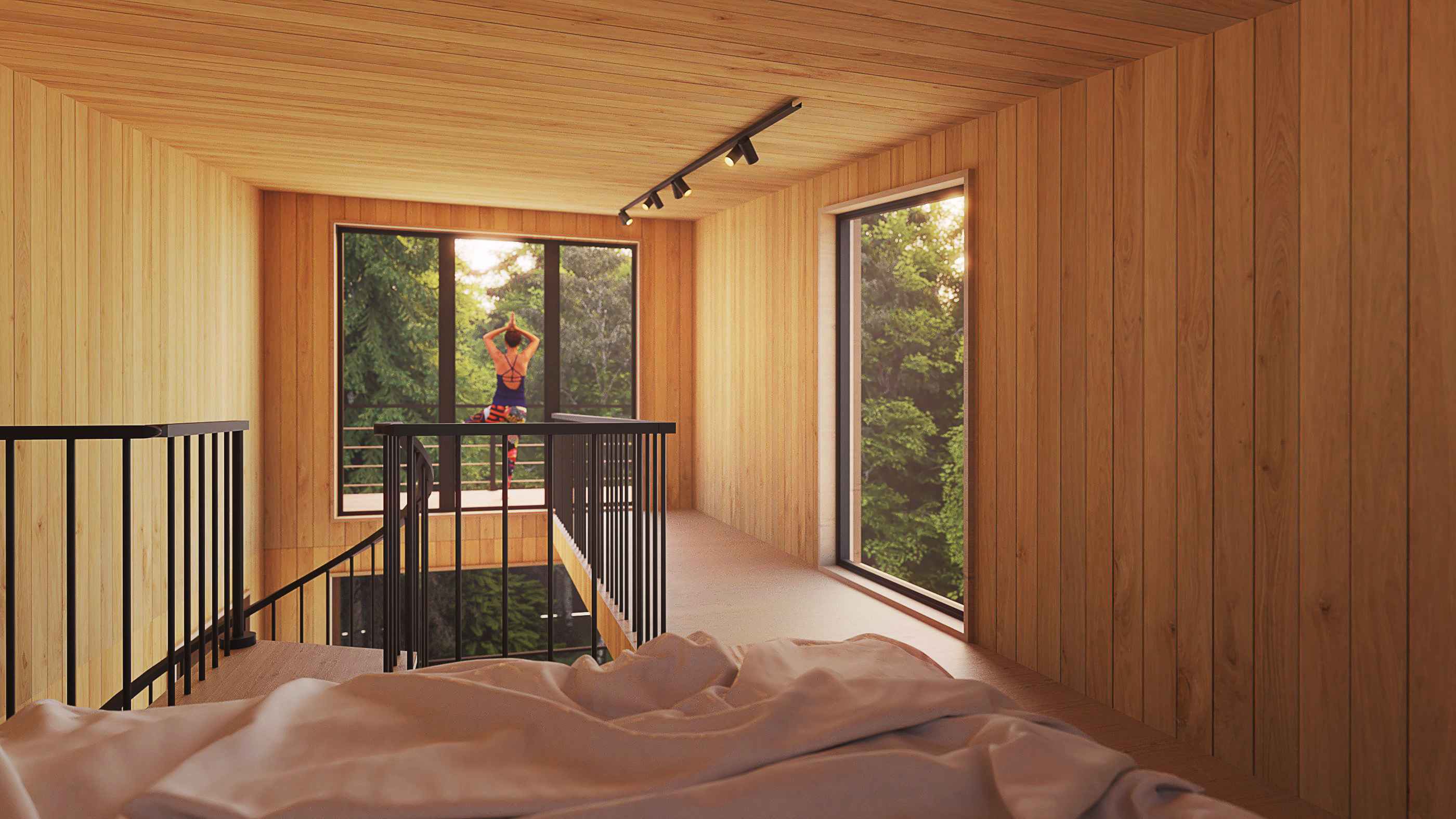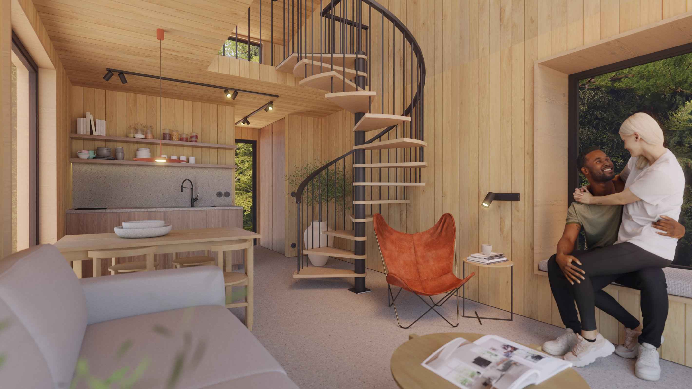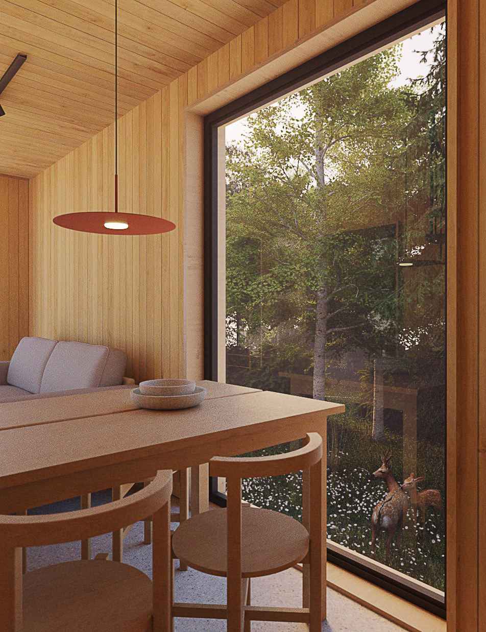 Zamiast wielomiesięcznych prac budowlanych, które mogłyby zakłócić lokalny ekosystem, większość elementów powstaje wcześniej w kontrolowanych warunkach fabryki, a na działkę przyjeżdża jako gotowe, wykończone moduły.